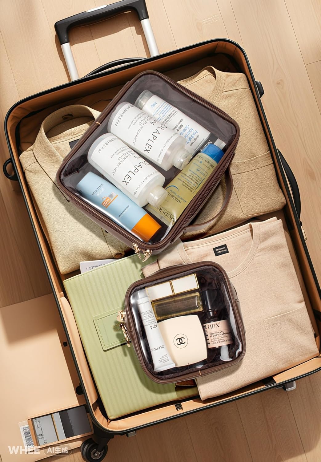 🍒【Clear Makeup Bag Organizer 】Our clear cosmetic bags perfectly store the travel bottles for toiletries, travel size toiletries kit, and other travel essentials,beach essetiansl. Perfect for toiletries, sunscreen for the beach, your accessories, pool accessories,bogg bag accessories,personal item, snacks, lunch, coins, hair stuff, lipstick, diaper hygiene, skincare items, or any other accessory!