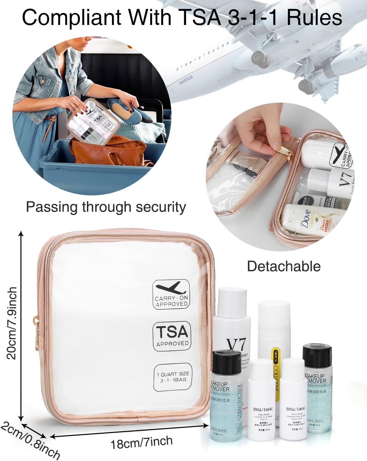 Detachable TSA Approved Toiletry Bag : The 7.9 x 7 x 0.8 inch clear travel toiletry bag , so you can easily and quickly pass through security screening. very convenient