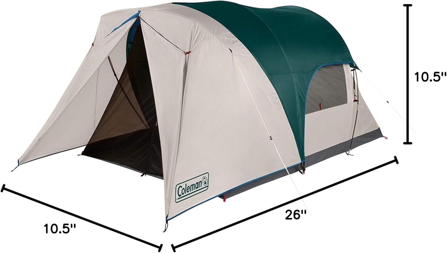 Coleman Cabin Camping Tent with Screened Porch, 4/6 Person Weatherproof Tent with Enclosed Screened Porch Option, Includes Rainfly, Carry Bag, Extra Storage, and 10 Minute Setup