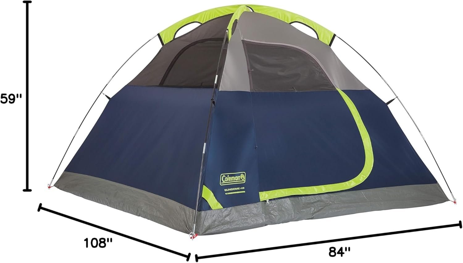 Coleman Sundome 2/3/4/6 Person Weatherproof Tent with Rainfly, Ventilated Tent Sets Up in 10 Mins