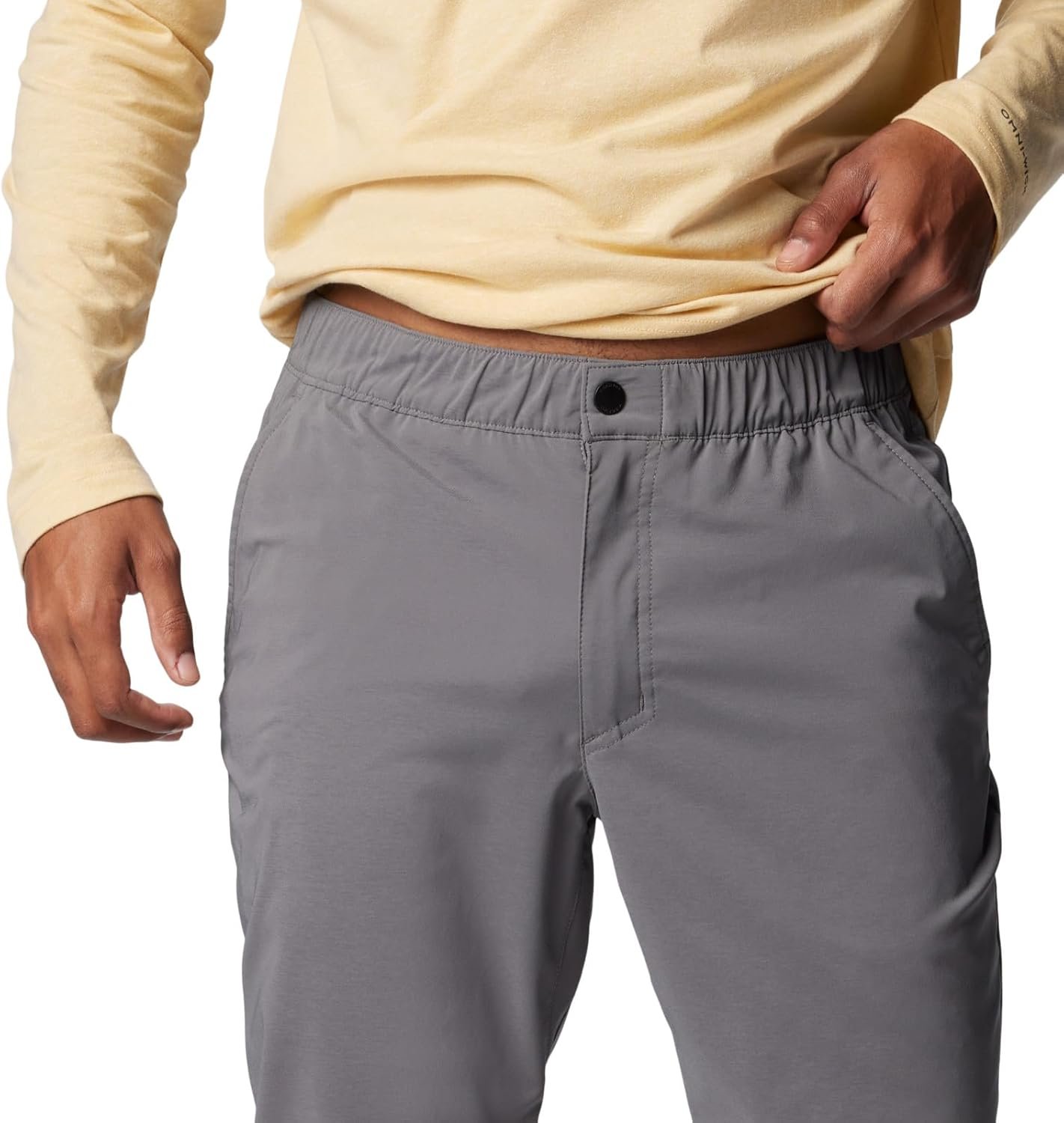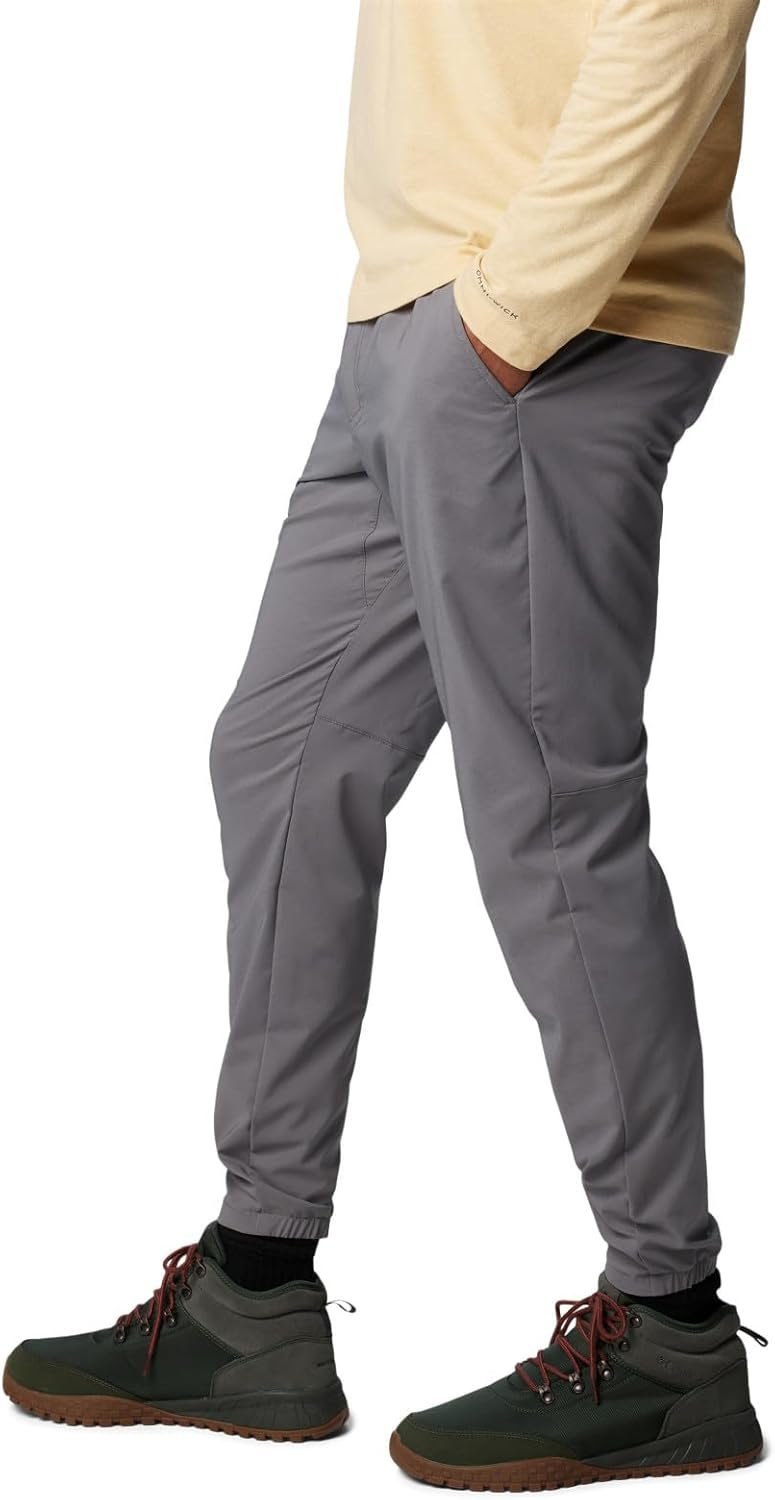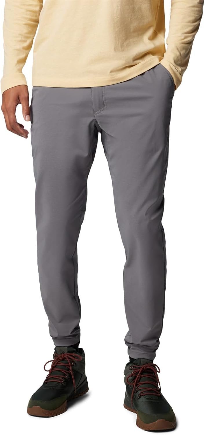 Made with stretch fabric that’s water-and-stain-resistant for added weather protection, these Columbia men’s pull-on chino pants offer casual comfort for work, travel, and trail. They’re reinforced with a gusset detail and have multiple pockets to help keep you organized. Columbia offers these pants in multiple colors and sizes. Active fit.