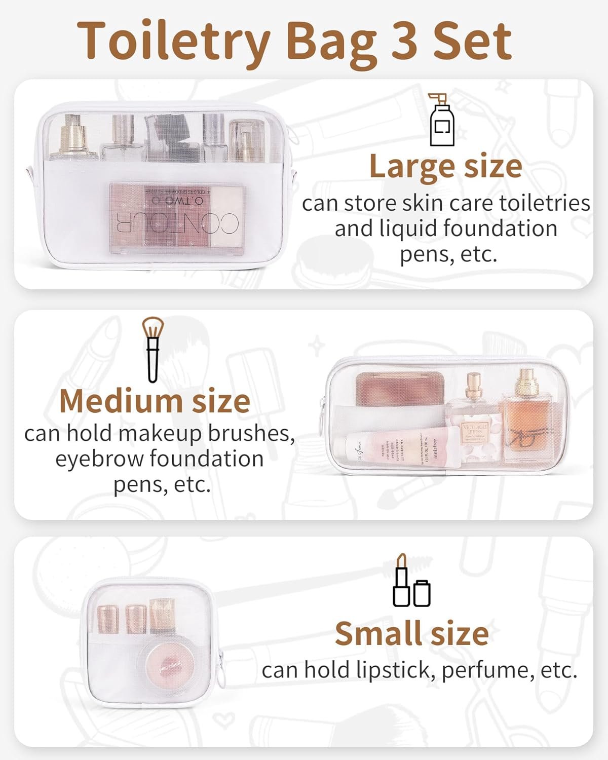 【Lightweight, Wrinkle-resistant, and Durable】The tear-resistant mesh is finely woven yet strong, offering both breathability and easy identification of contents. The double zippers are not only smooth but also provide efficient compression capabilities.