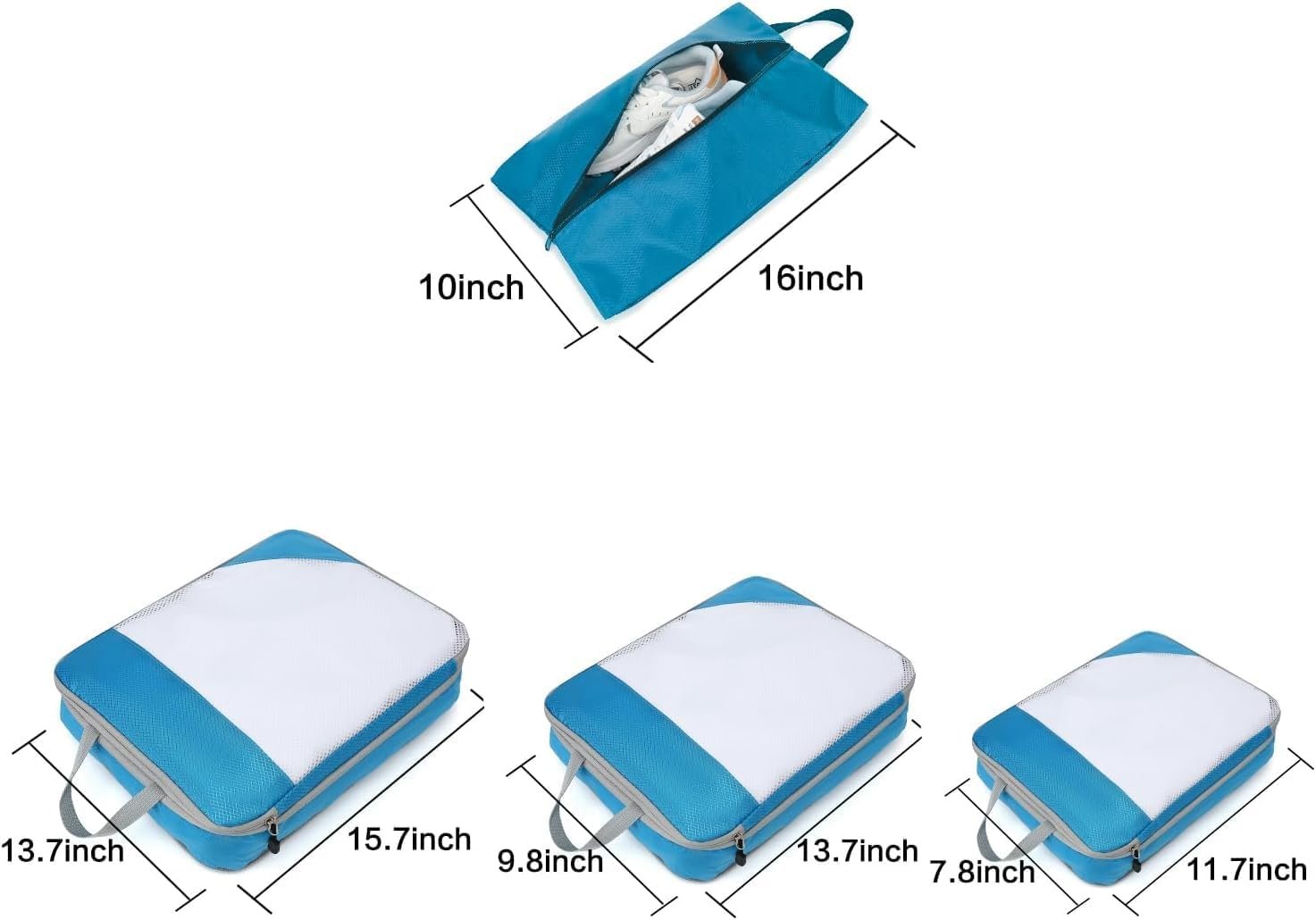 Compression Packing Cubes for Travel, 3 Set Packing Cubes Travel Organizer and 1 Set Shoe Bag, Compressible Travel Essentials Packing Organizers Travel Essentials for Women/Men
