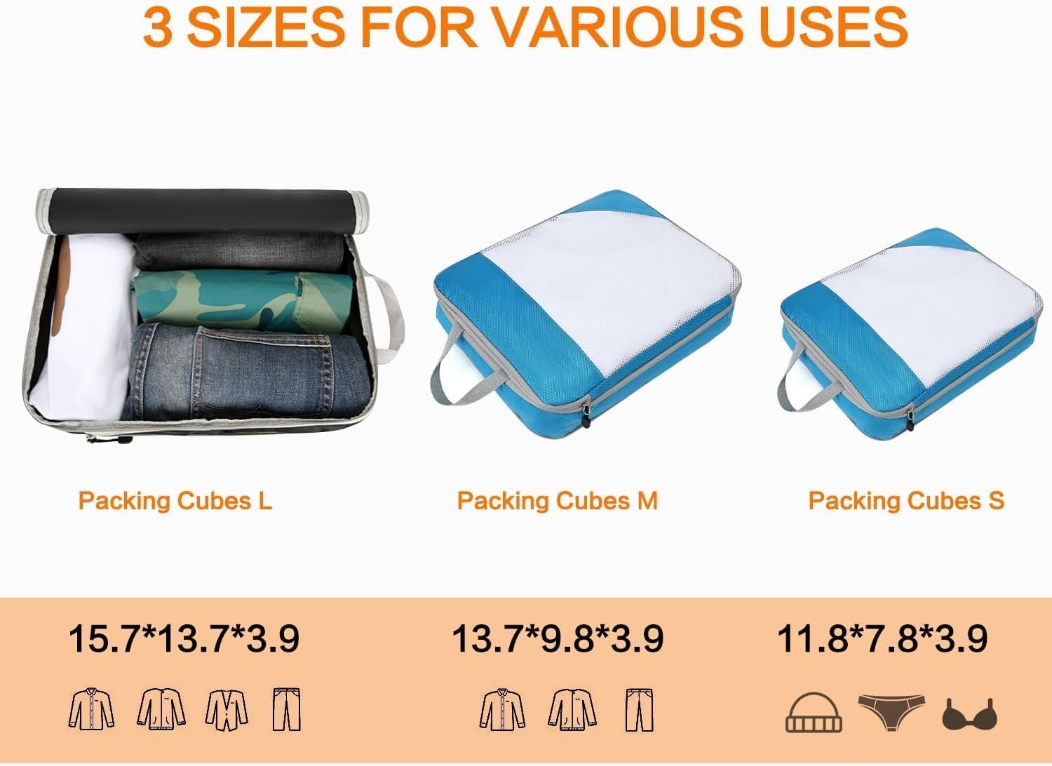 【𝐂𝐨𝐦𝐩𝐥𝐞𝐭𝐞 𝐎𝐫𝐠𝐚𝐧𝐢𝐳𝐚𝐭𝐢𝐨𝐧 𝐒𝐨𝐥𝐮𝐭𝐢𝐨𝐧】 Our 3 Set Packing Cubes provide a comprehensive packing and organization solution. These packing cubes come in various sizes to accommodate your clothing, accessories, and travel essentials. Keep your belongings neat and tidy throughout your journey.