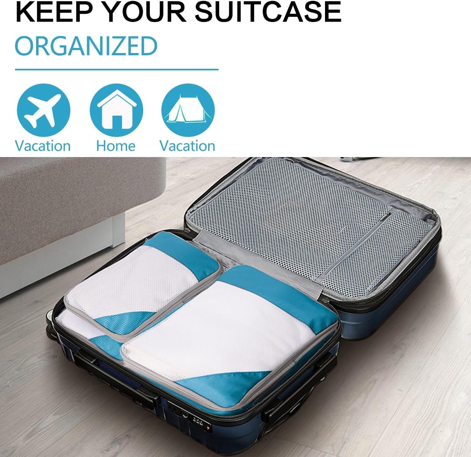 Stress-Free Travel: Our Travel Organizer Set, featuring Compression Packing Cubes for Suitcases, Travel Essentials Packing Organizers, and more, provides you with a stress-free travel experience. Say goodbye to chaotic packing and hello to an organized, hassle-free trip.