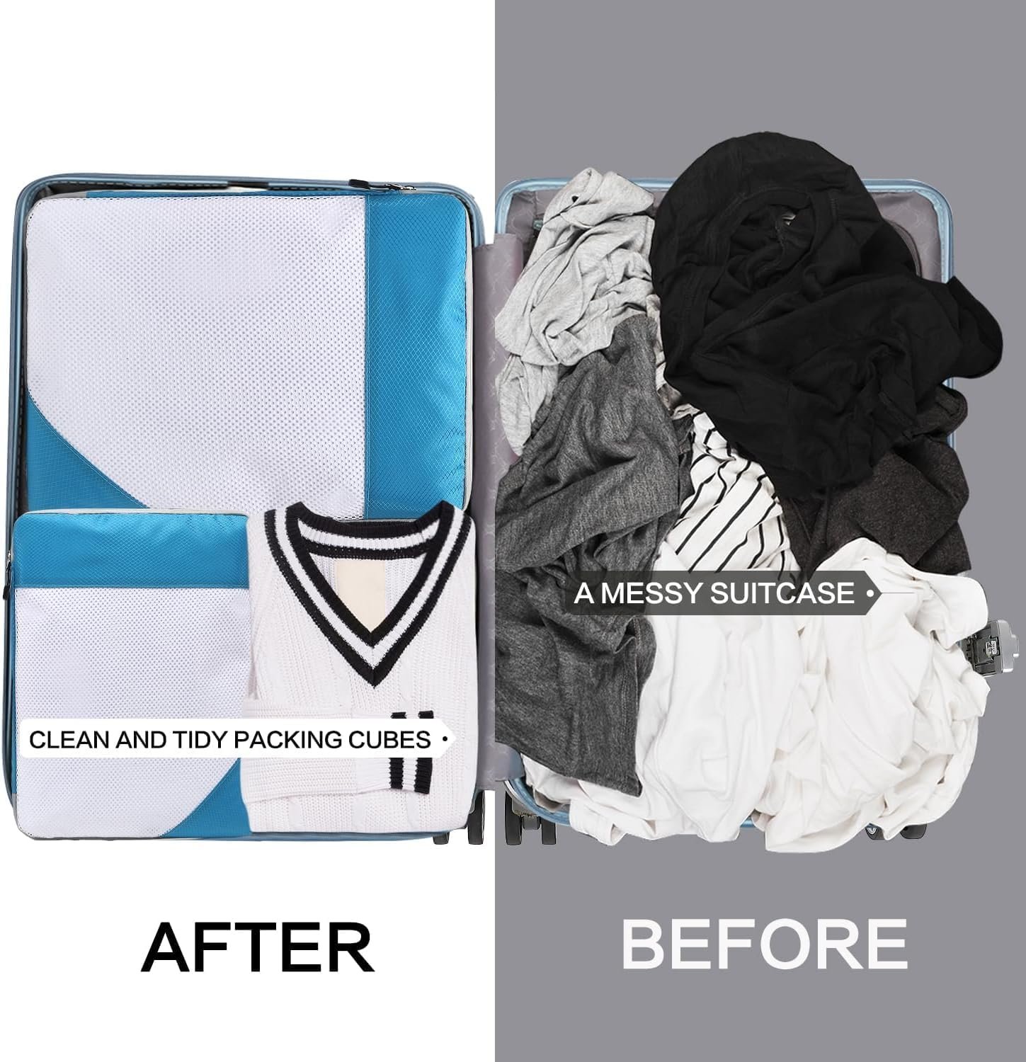 【𝐏𝐫𝐨𝐭𝐞𝐜𝐭𝐢𝐨𝐧 𝐚𝐧𝐝 𝐖𝐫𝐢𝐧𝐤𝐥𝐞-𝐅𝐫𝐞𝐞 𝐏𝐚𝐜𝐤𝐢𝐧𝐠】Packing Cubes are not only about space-saving but also protecting your garments. With our packing cubes, your clothes will stay wrinkle-free and in excellent condition. No more worrying about crumpled outfits when you reach your destination.
