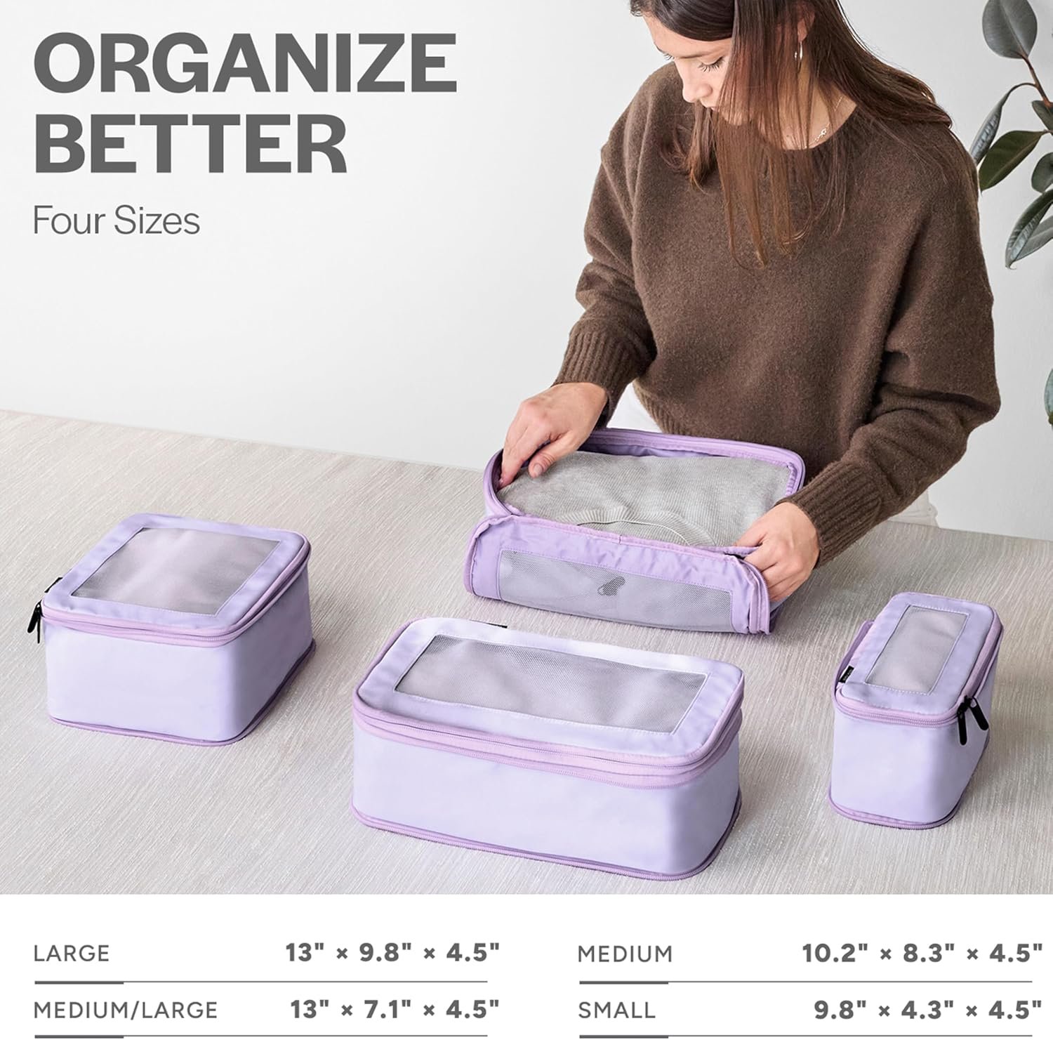 Compression Packing Cubes for Travel – Luggage Organizer Bags – Double Zipper Packing Cubes for Suitcases (4-Pack, Purple)
