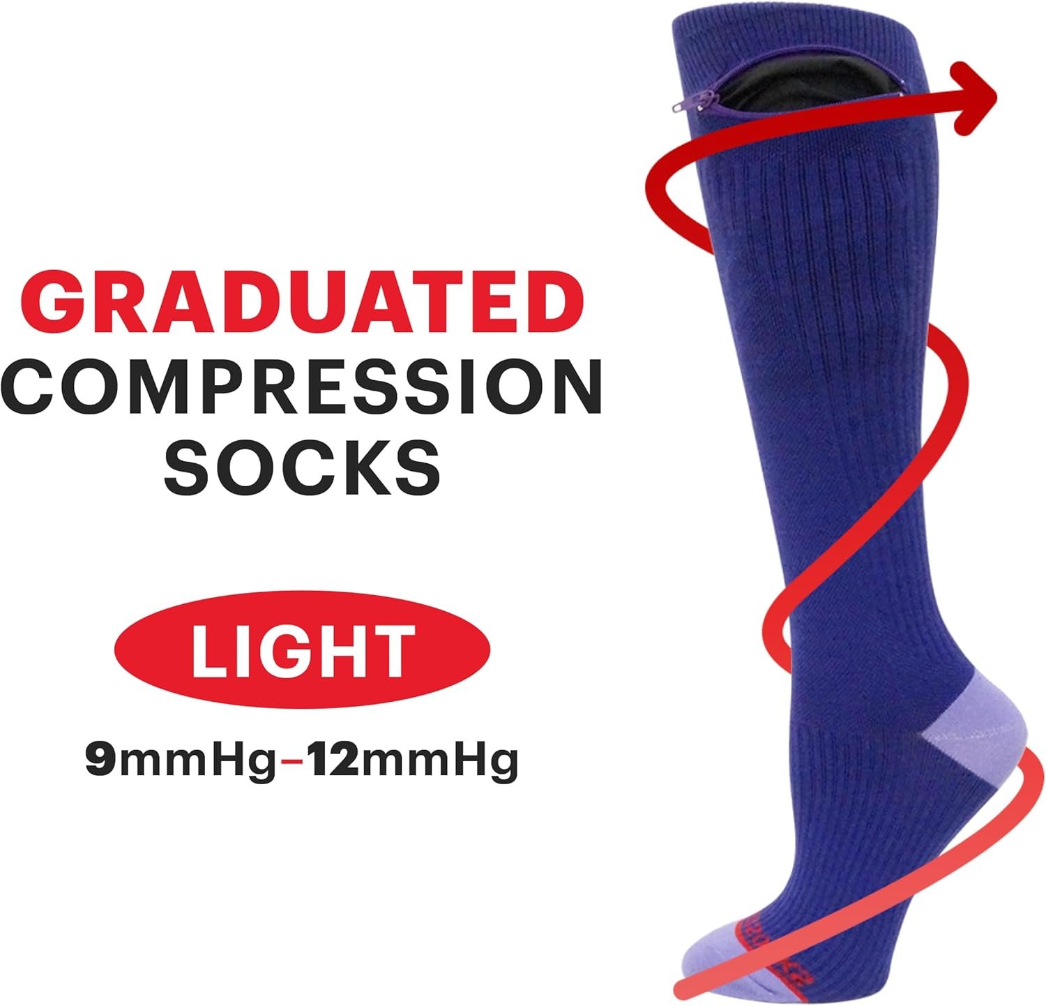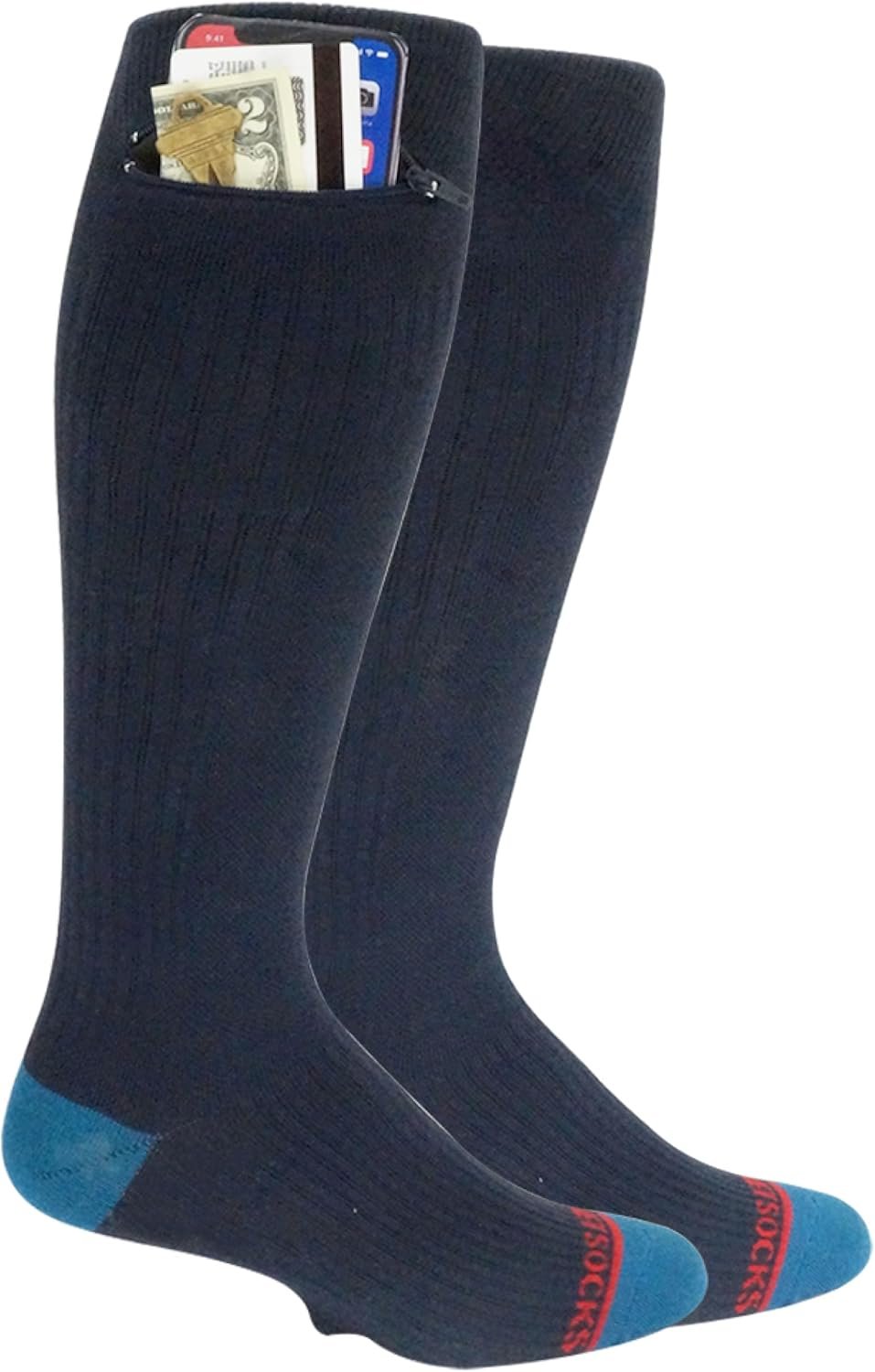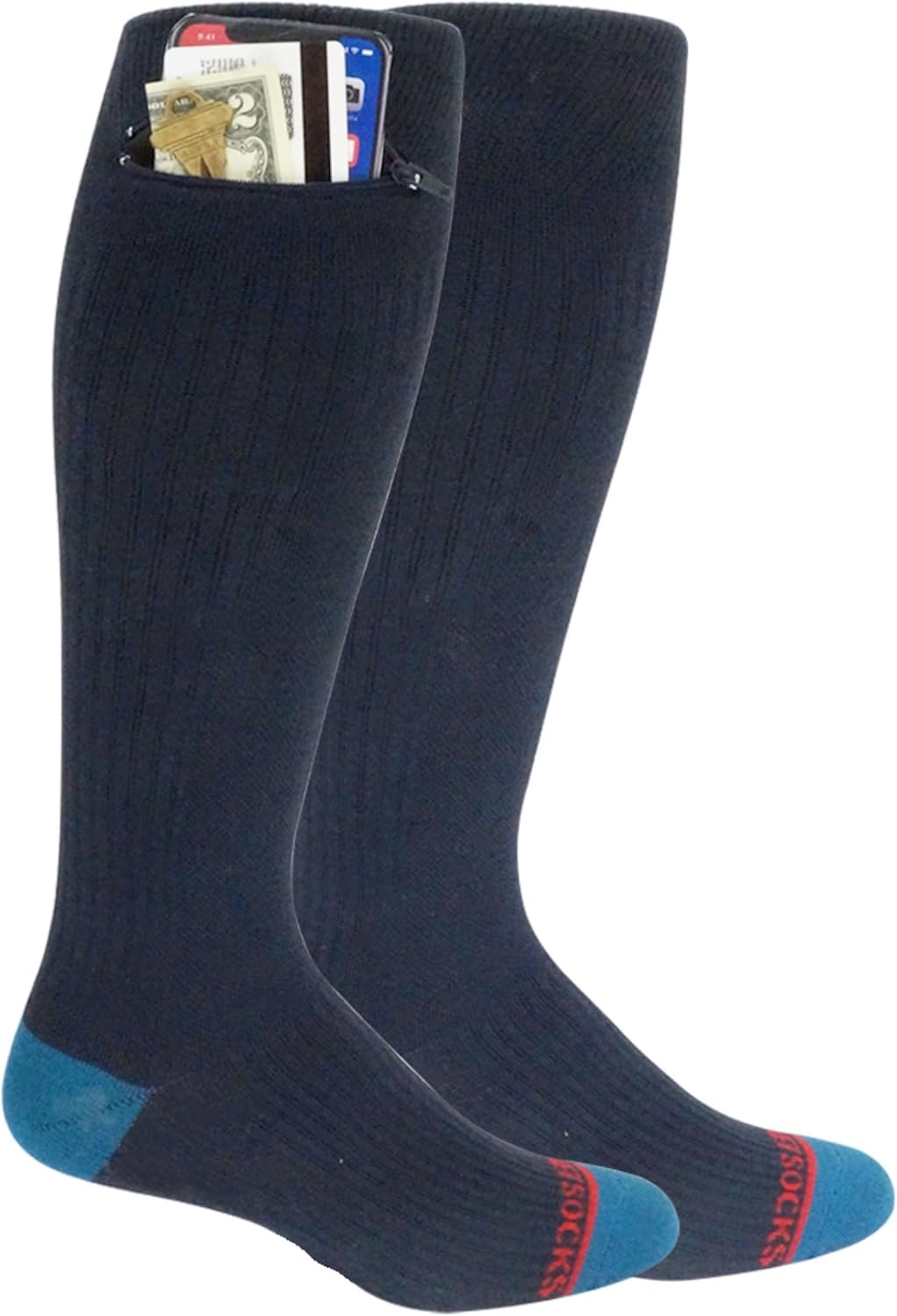 Compression Socks – Over the Calf Anti pickpocket Zipper Socks w/Pockets – 9mmHg – 12mmHg Light Compression
