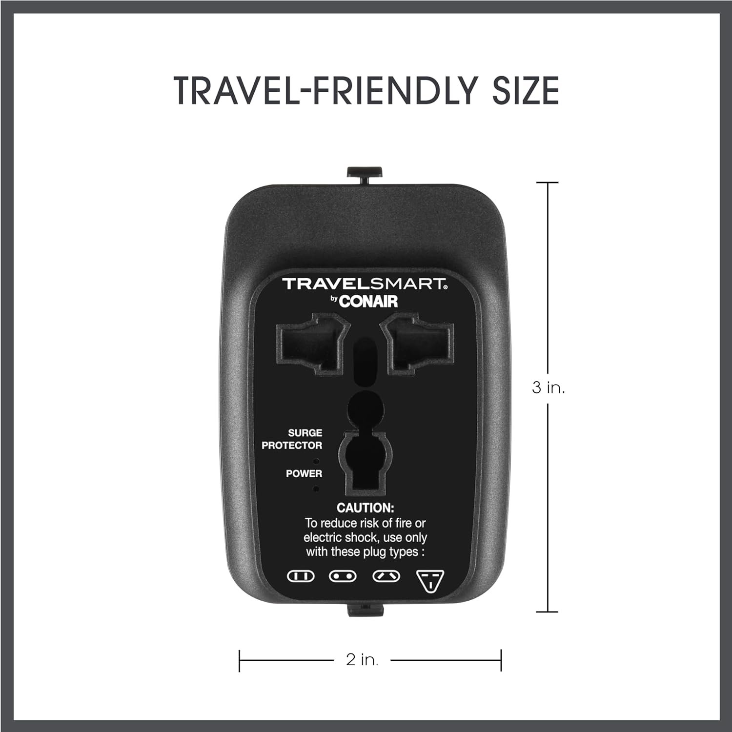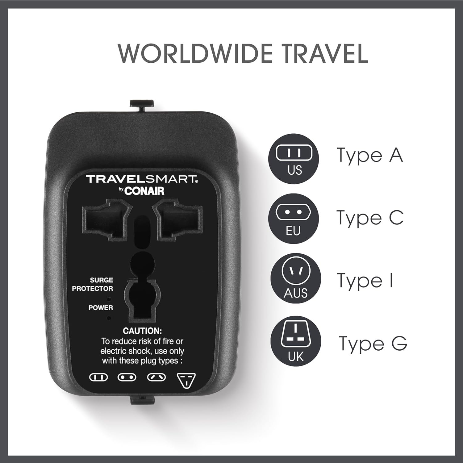 Conair Universal Travel Adapter – All-in-One European and Worldwide Travel Plug Adapter with Surge Protection – Includes USB C Port