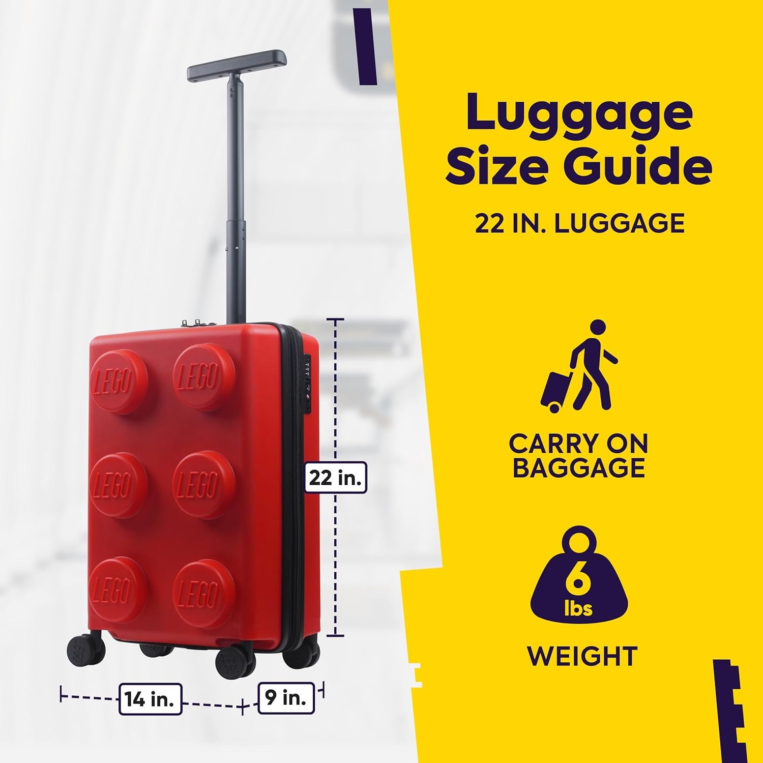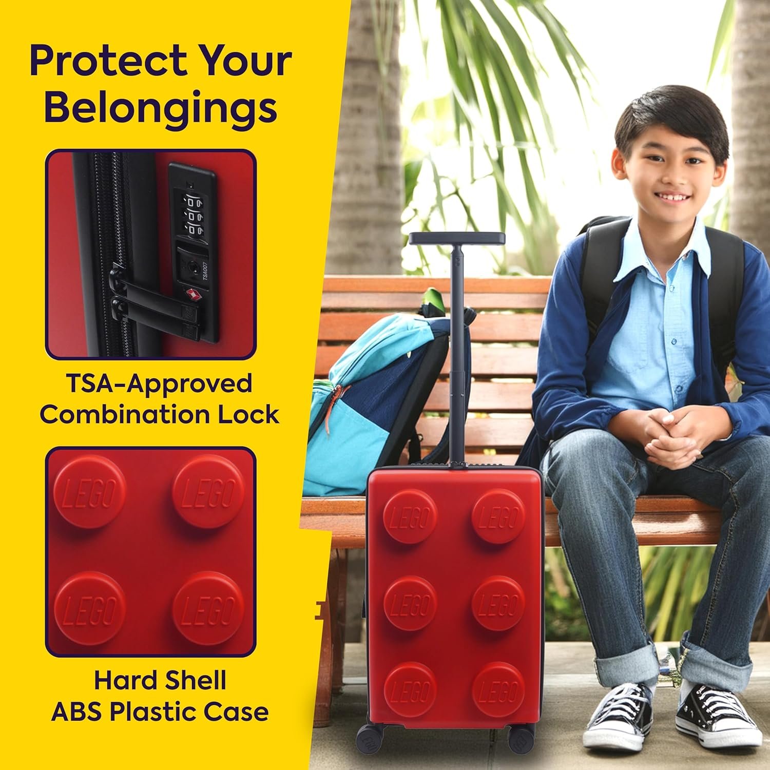 LEGO TRAVEL LUGGAGE: This cute and stylish hardshell luggage features a distinctive LEGO brick design, making this a perfect gift for the LEGO fan in your life, and is perfect for all of your travel needs, with dual zippers to keep your valuables safe and secure inside; this hardshell luggage carrier meets most airline requirements for carry-on luggage and fits into most overhead bins, and features a TSA combination lock to keep your valuables secure inside