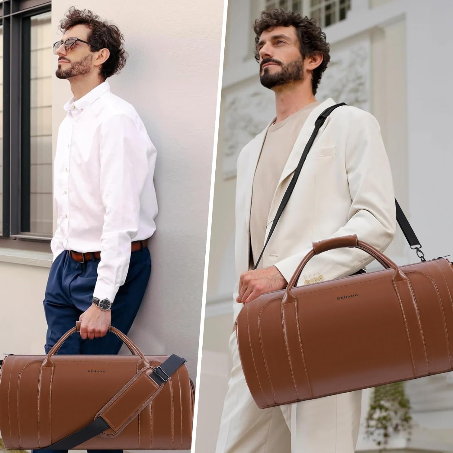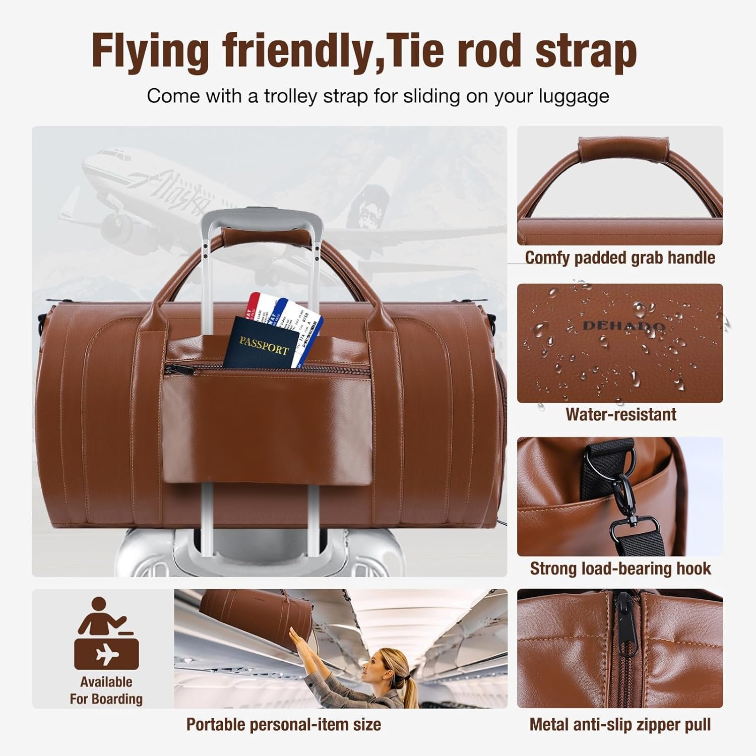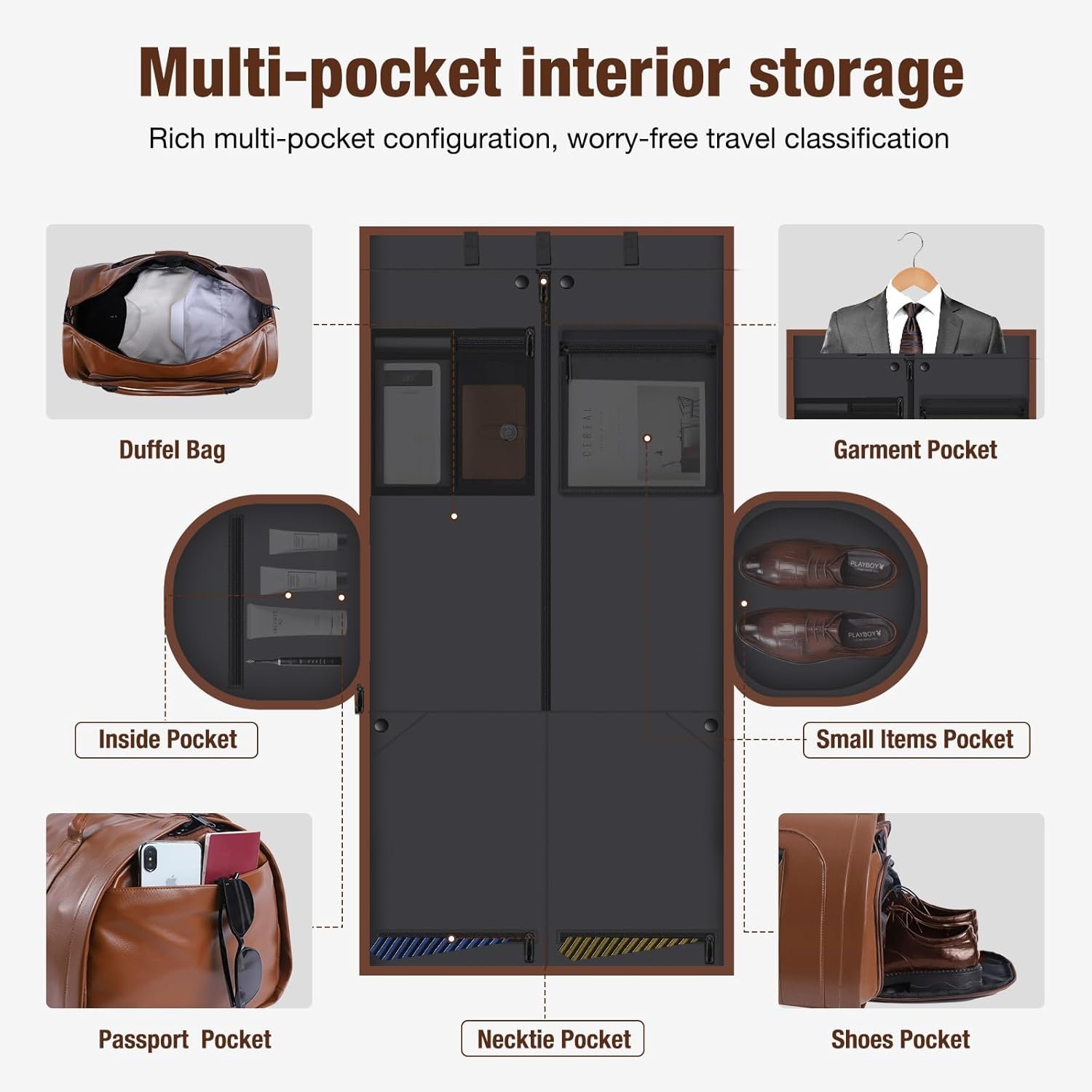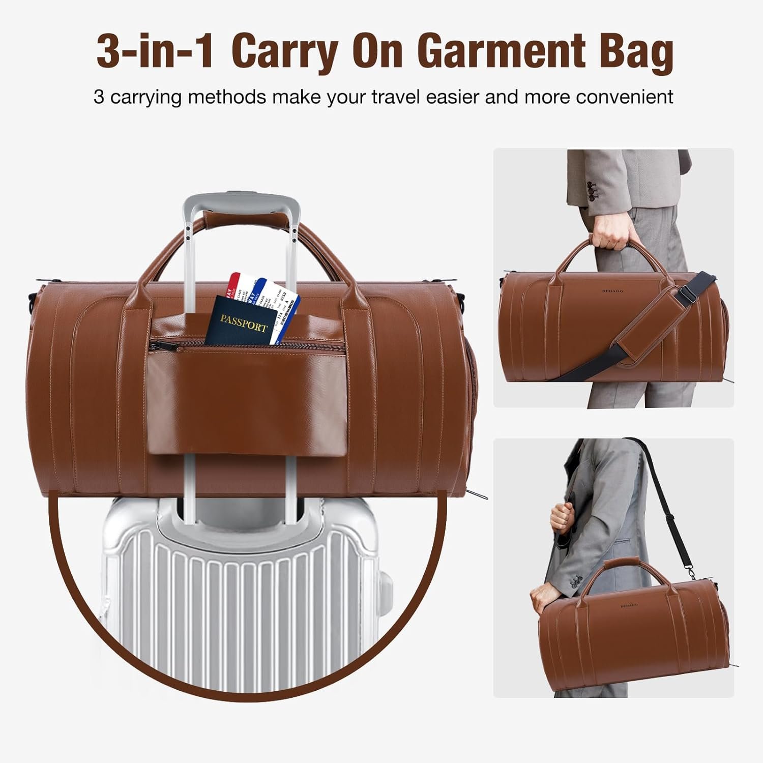 Convertible Garment Duffel Bag for Travel, For Men Women, 2 IN 1 Carry on Suit Bag with Shoulder Straps, PU Leather Overnight Bags with Shoes Compartment,14″ Laptop Compartment