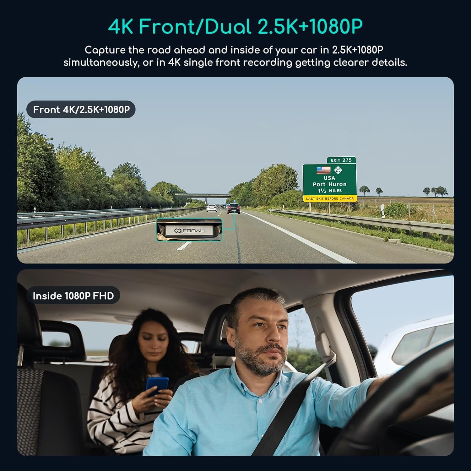2.5K+1080P Dual Dash Cam Designed for Uber Drivers: Capture sharp details simultaneously with the front (170°) and cabin (150°) cameras at QHD 2.5K(2560*1440P)+1080P FHD resolution. The dash cam front and inside is Perfect for Uber /Lyft /Rideshare drivers, driving license preparation, and family trips. Record passenger incidents, enhance driving behavior, and preserve precious memories