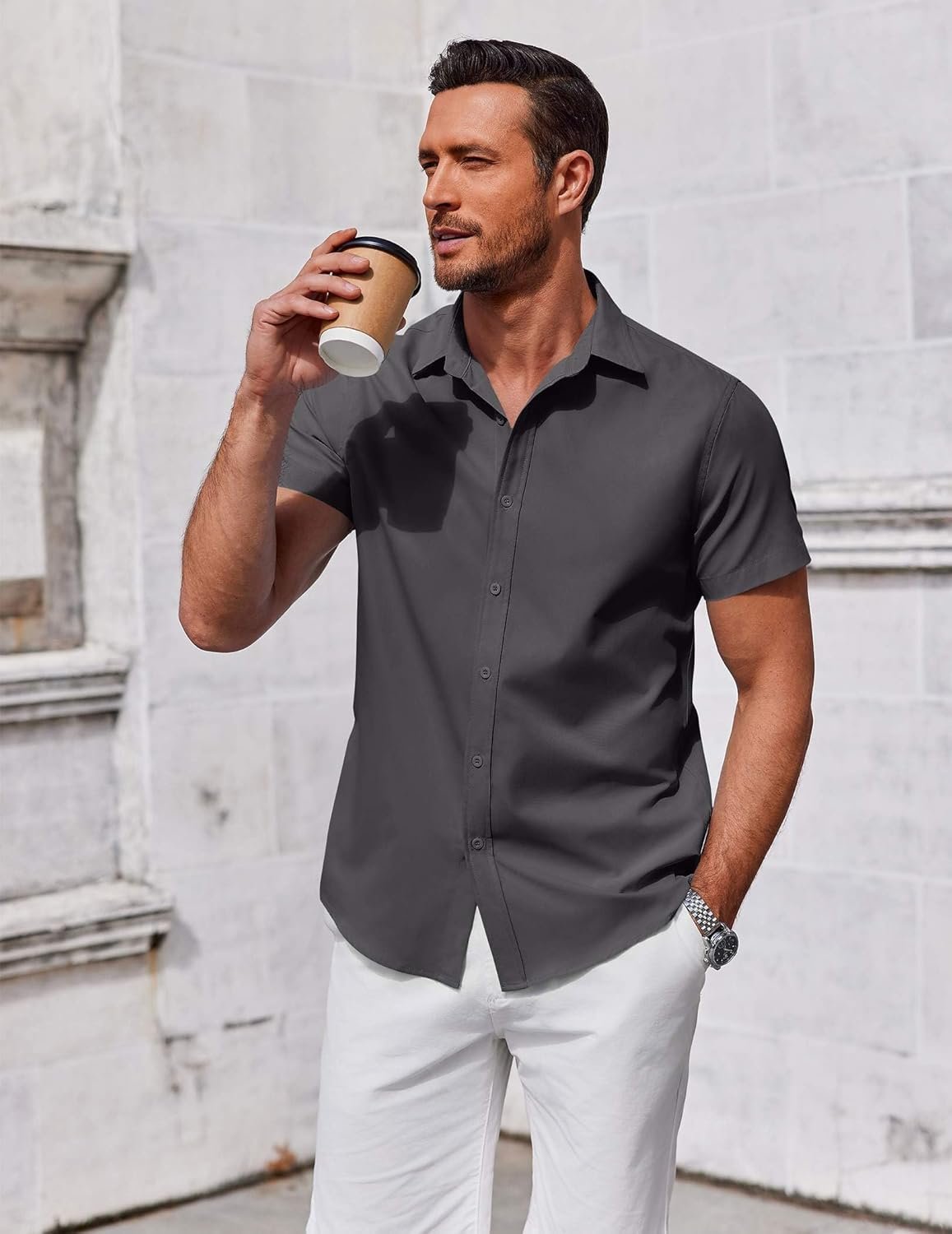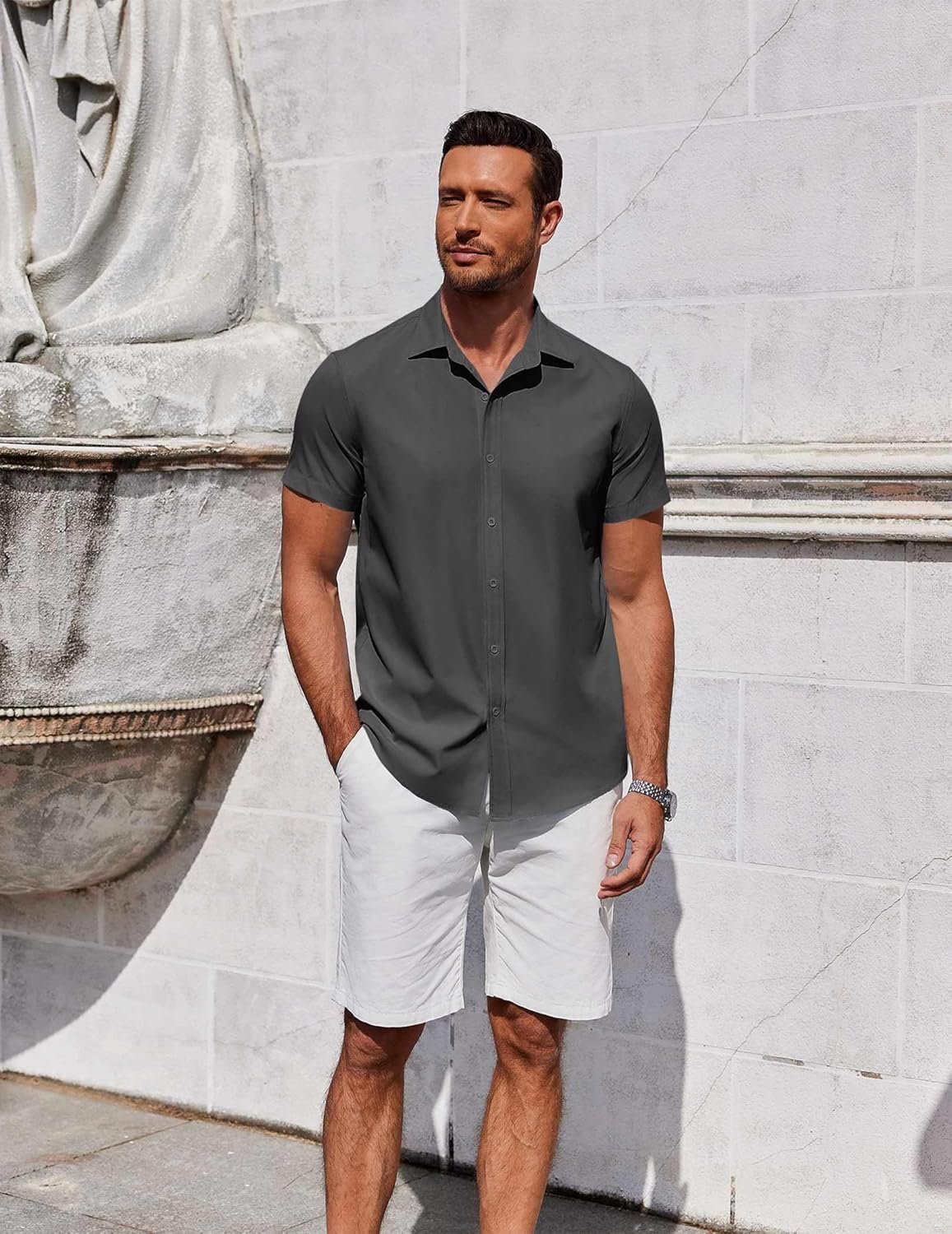 MODERN LOOK — Mens Button Down Shirt Short Sleeve is great to pair with chinos/jeans for casual daily wear, or match this business shirt with dress pants for classy sharp look. Enjoy The Release Of Your Charm.