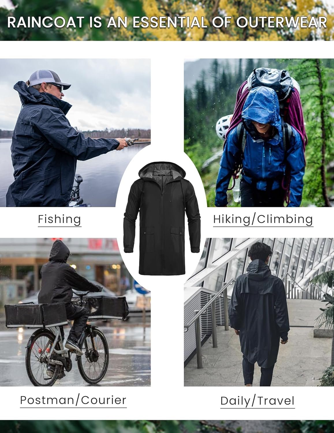 COOFANDY Men’s Long Raincoat Ligtweight Rain Jacket Waterproof Outdoor Jackets with Hood