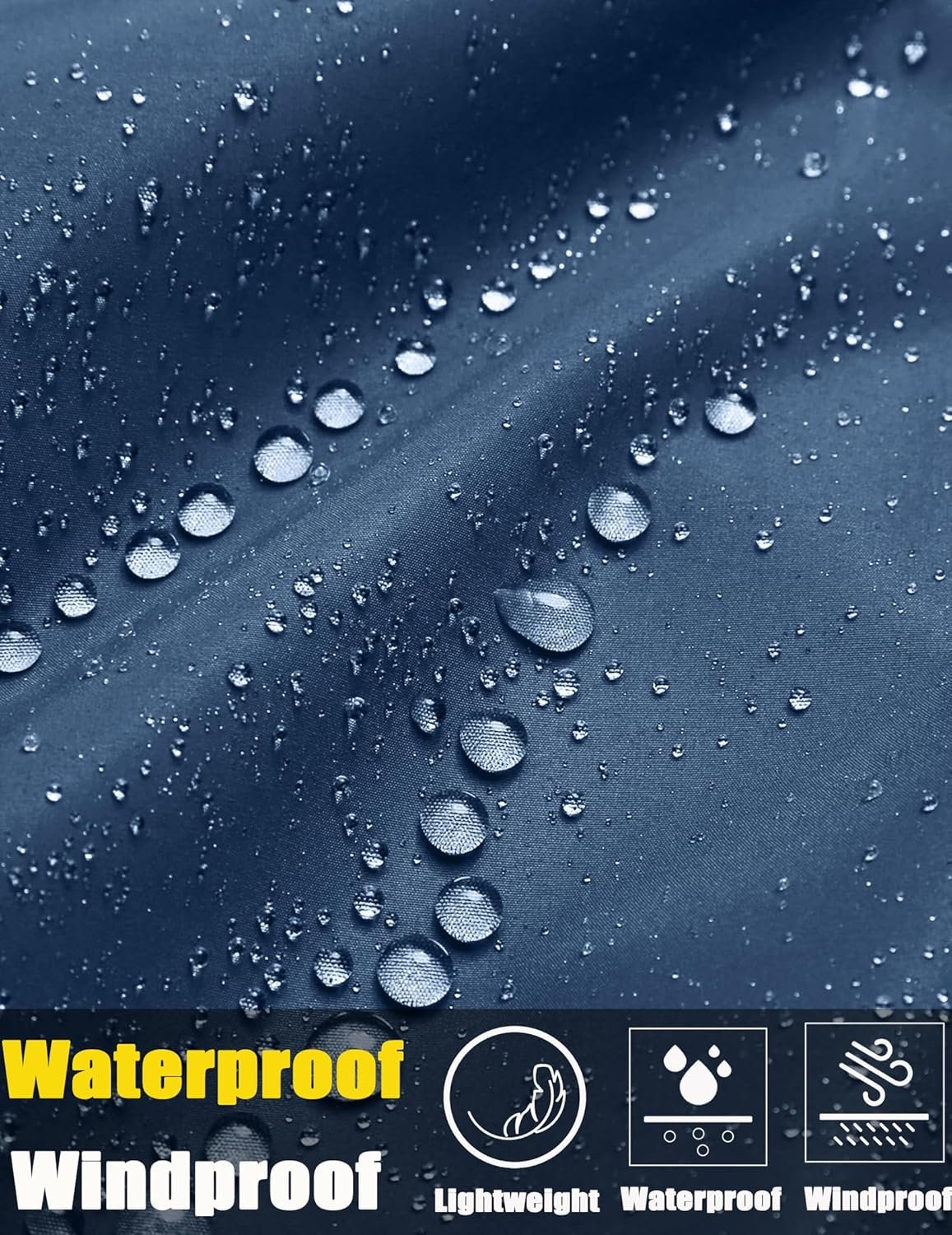Men’s Rain Jacket is made of high density waterproof and windproof fabric. 100% fully sealed process and adjustable drawstring designs keep you all day dry and col in wet weather, rainy day, or any kinds of weather
