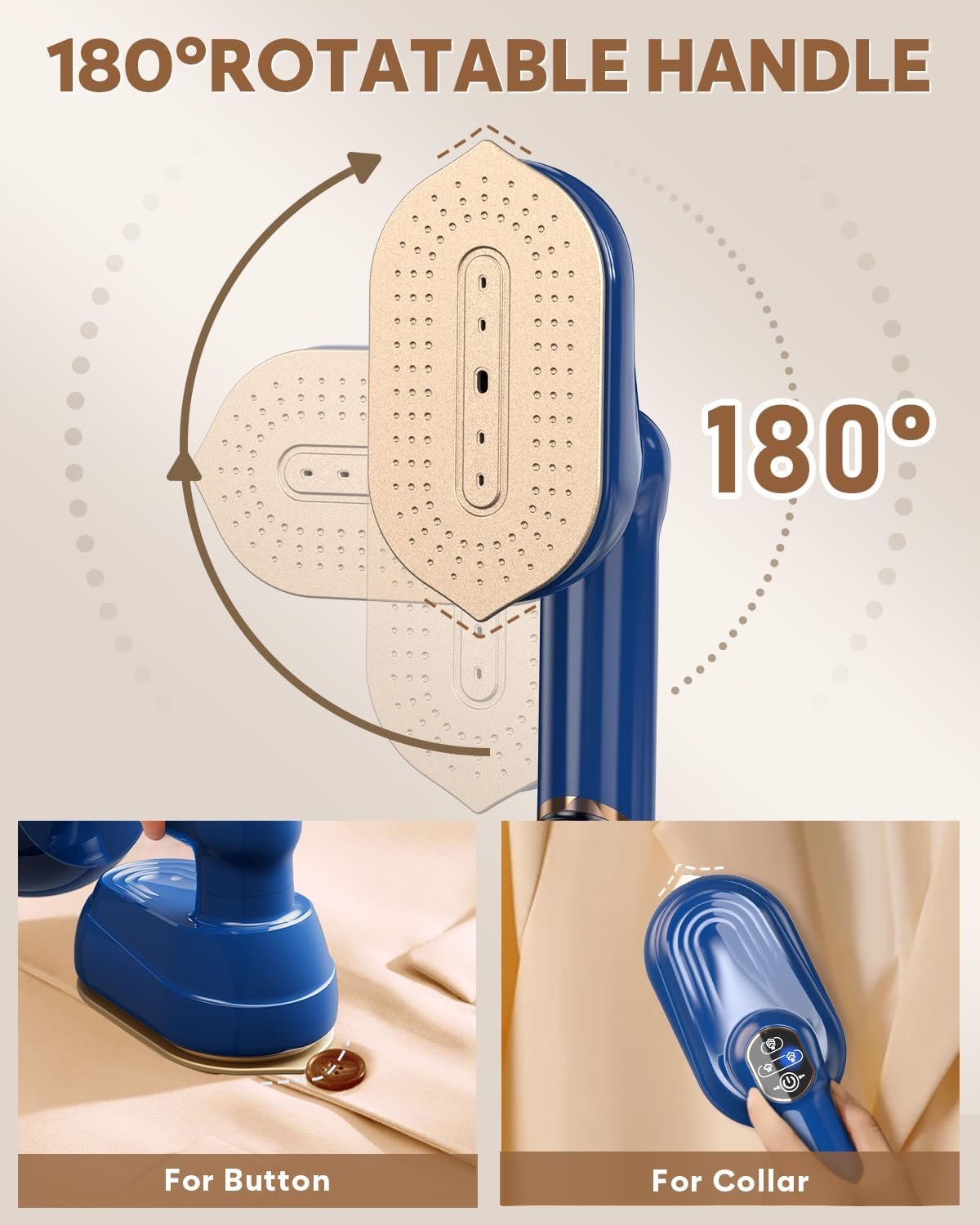 【Upgraded Steam Iron】The CPWORLD clothes steamer combines the convenience of a stable standing design with a 180° rotating handle, allowing for effortless, versatile use from any angle. Meanwhile, the unique beauty tip ironing head ensures precise detail ironing, easily handling every part of your clothes. Ideal for quick touch-ups or full garment care, it offers a hassle-free way to keep your clothes fresh with minimal effort.