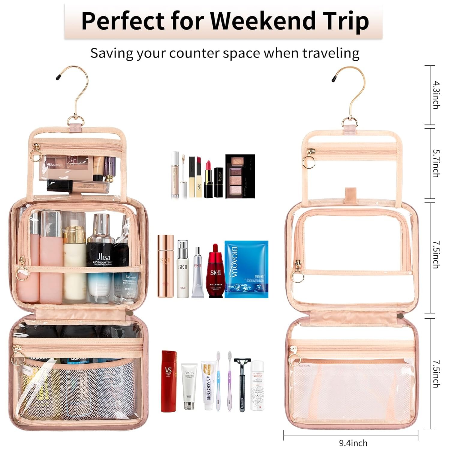 CUBETASTIC Clear Cosmetic Bags, Hanging Toiletry Bag for Travelling, Transparent Makeup Organizer Case, Water-resistant Portable Skncare Storage Pouch with Handle, Travel Must Haves