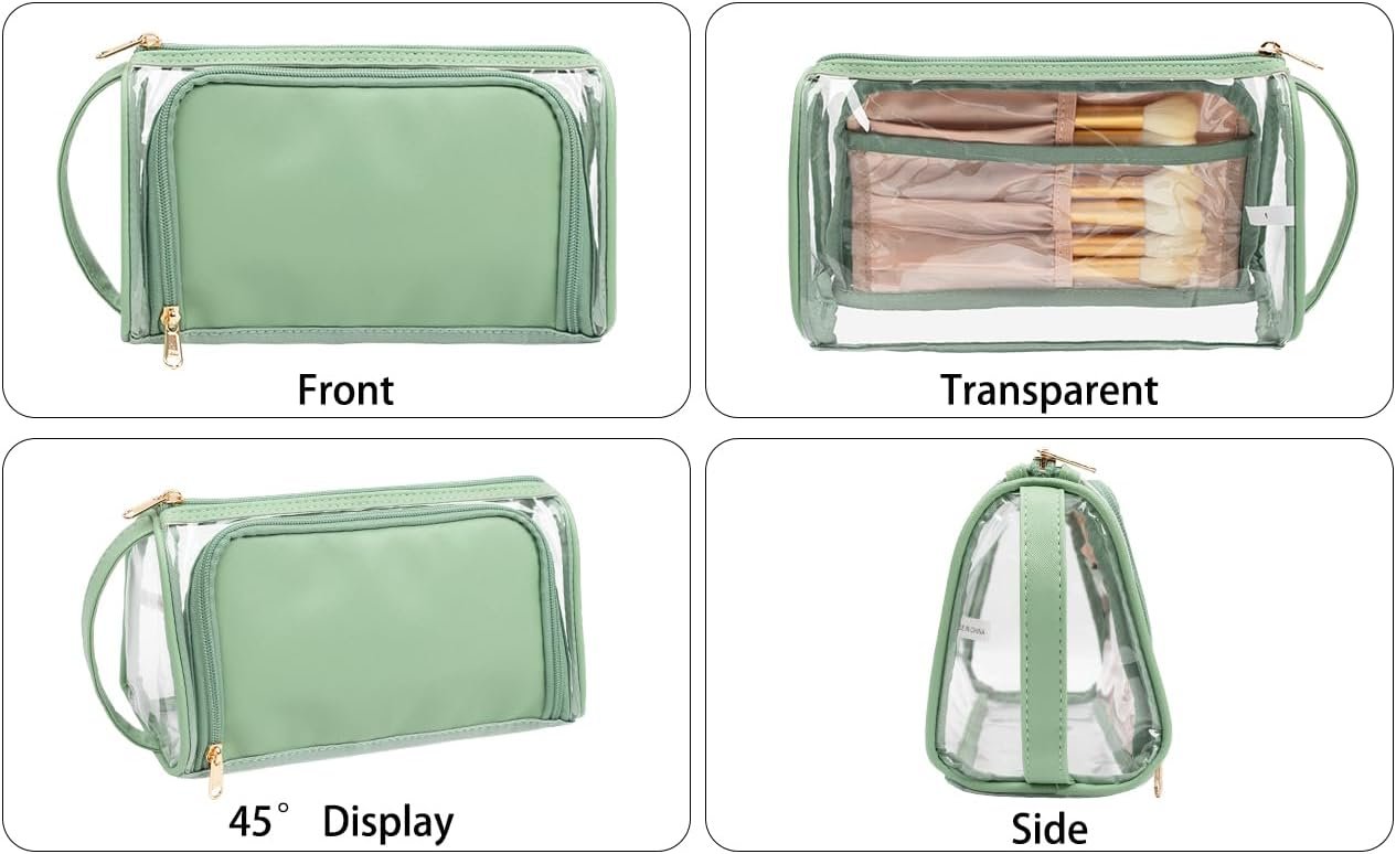 ☑ WATER-RESISTANT – This clear cosmetic bag is made of waterproof transparent PVC and PU leather material. Preventing your bag from getting wet and protecting your items. Easy to wipe and clean.