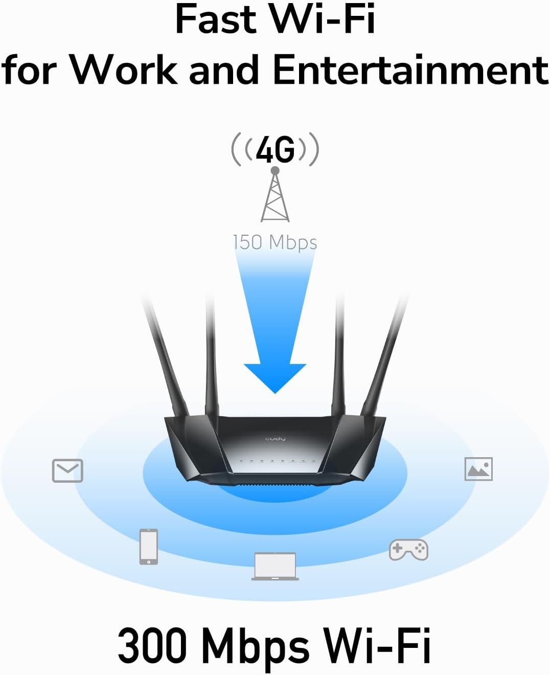 Cudy N300 WiFi Unlocked 4G LTE Modem Router with SIM Card Slot, 300Mbps WiFi, LTE Cat4, EC25-AFX Qualcomm Chipset, 5dBi High Gain Antennas, FDD, DDNS, VPN, Cloudflare, Plug and Play, LT400