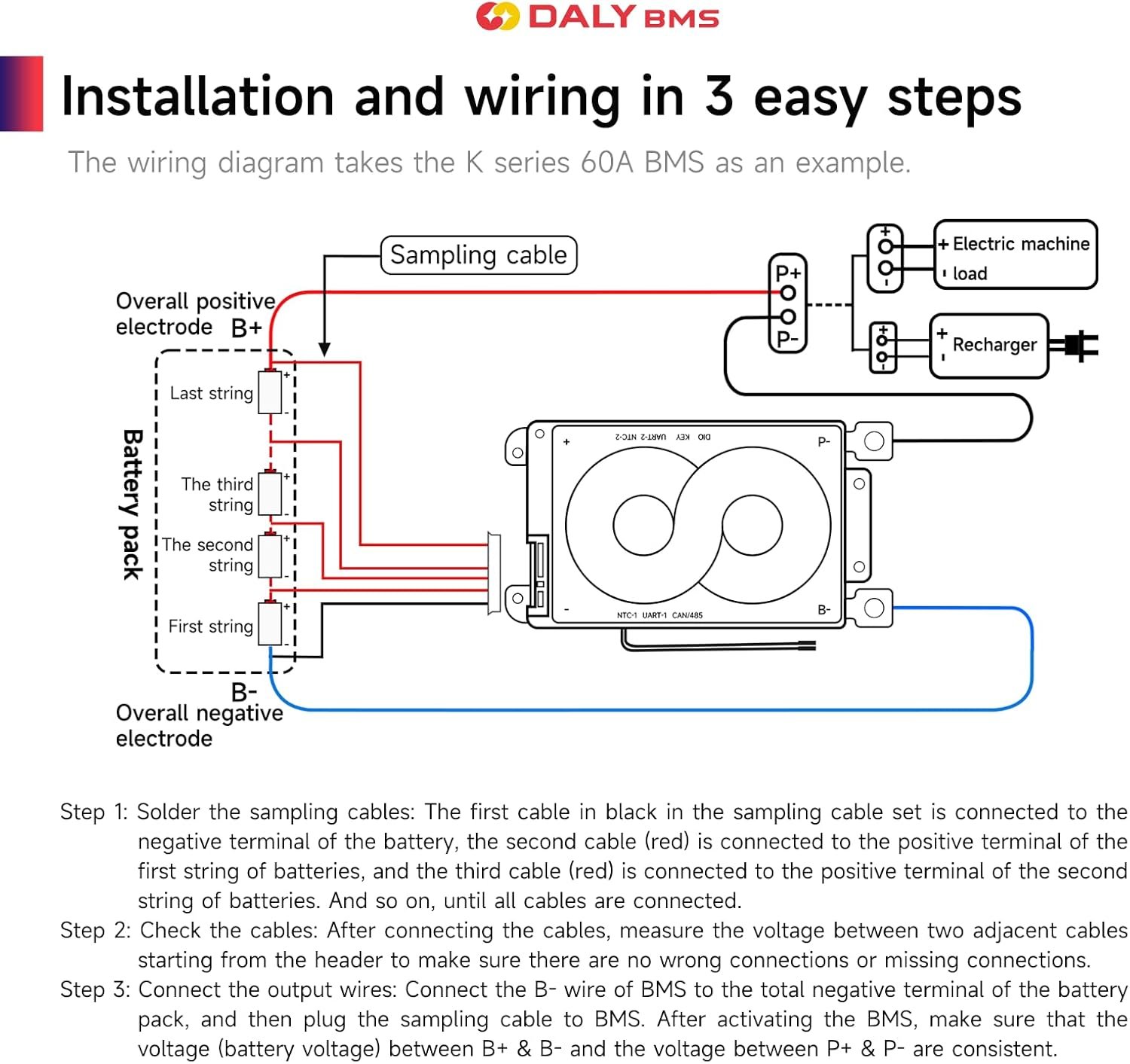 【DALY BMS】Multiple communication functions+ expansion function ports,CAN, RS485, dual UART communication interfaces,rich expansion applications.If you need Touch Screen,active balancer, parallel module or other accessories, please contact online customer service.