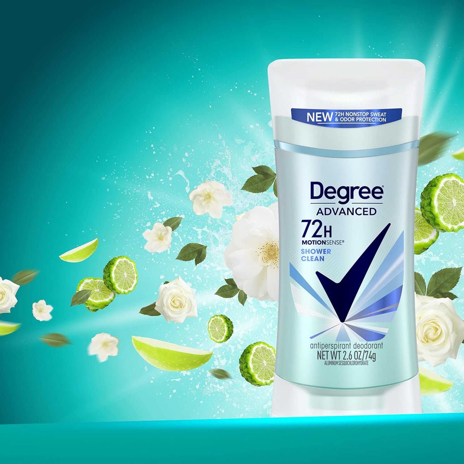 Degree Advanced Antiperspirant Deodorant 4 count 72-Hour Sweat & Odor Protection Shower Clean Antiperspirant for Women with MotionSense Technology 2.6 oz