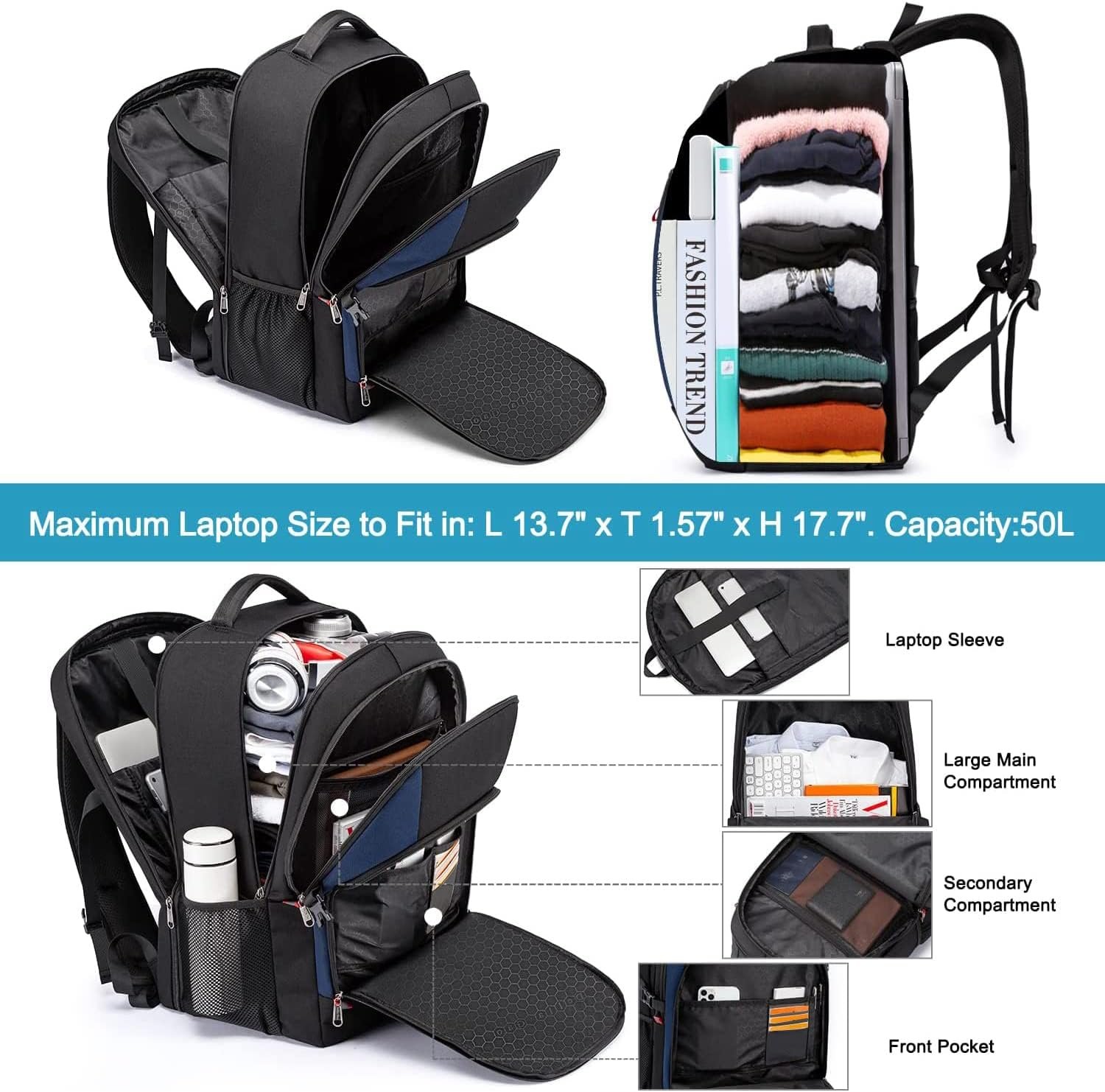 TSA APPROVED & MULTIPURPOSE – Convenient at Checkpoint design, the large black rucksack can be opened 90-180, degrees freely, making you quickly through the airport security and keep things organized, exclusive designed for airplane travel. The laptop rucksack is suitable for indoor/outdoor activities. And served as student backpack, travel backpack, work backpack, hiking rucksack. Perfect for work/commuting/occasional international Travel/weekend trip/Hiking/Camping