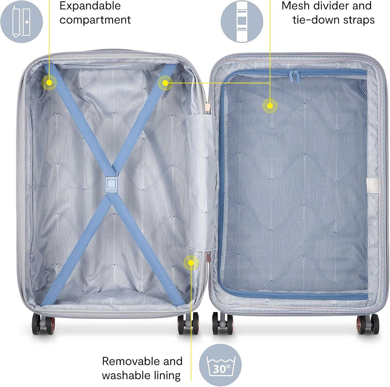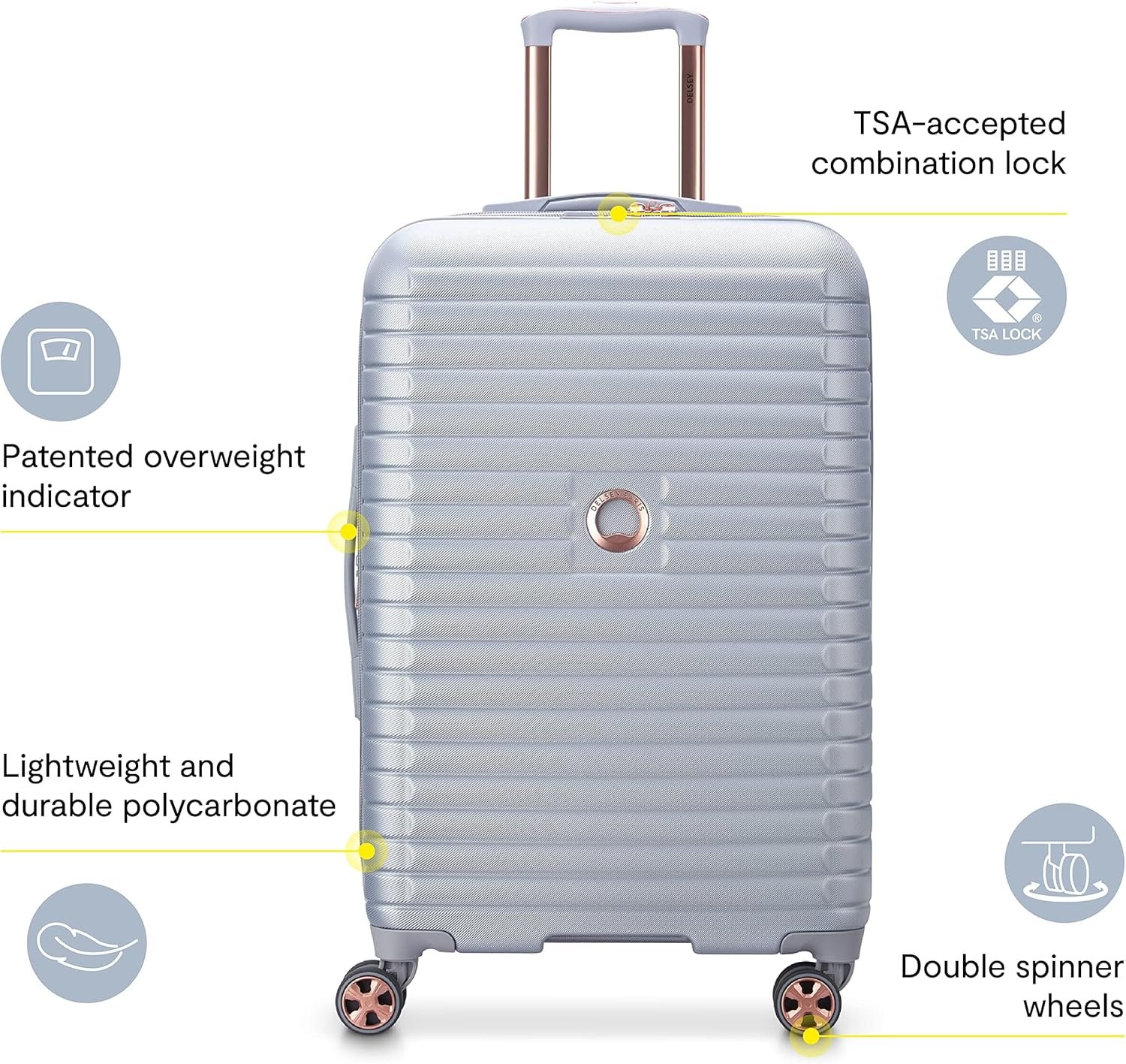 Feaures Delsey’s patented Overweight Indicator (on 24/28″ models) lets you know if your luggage weighs more than 48.5 lbs to avoid charges at check-in (no battery required)