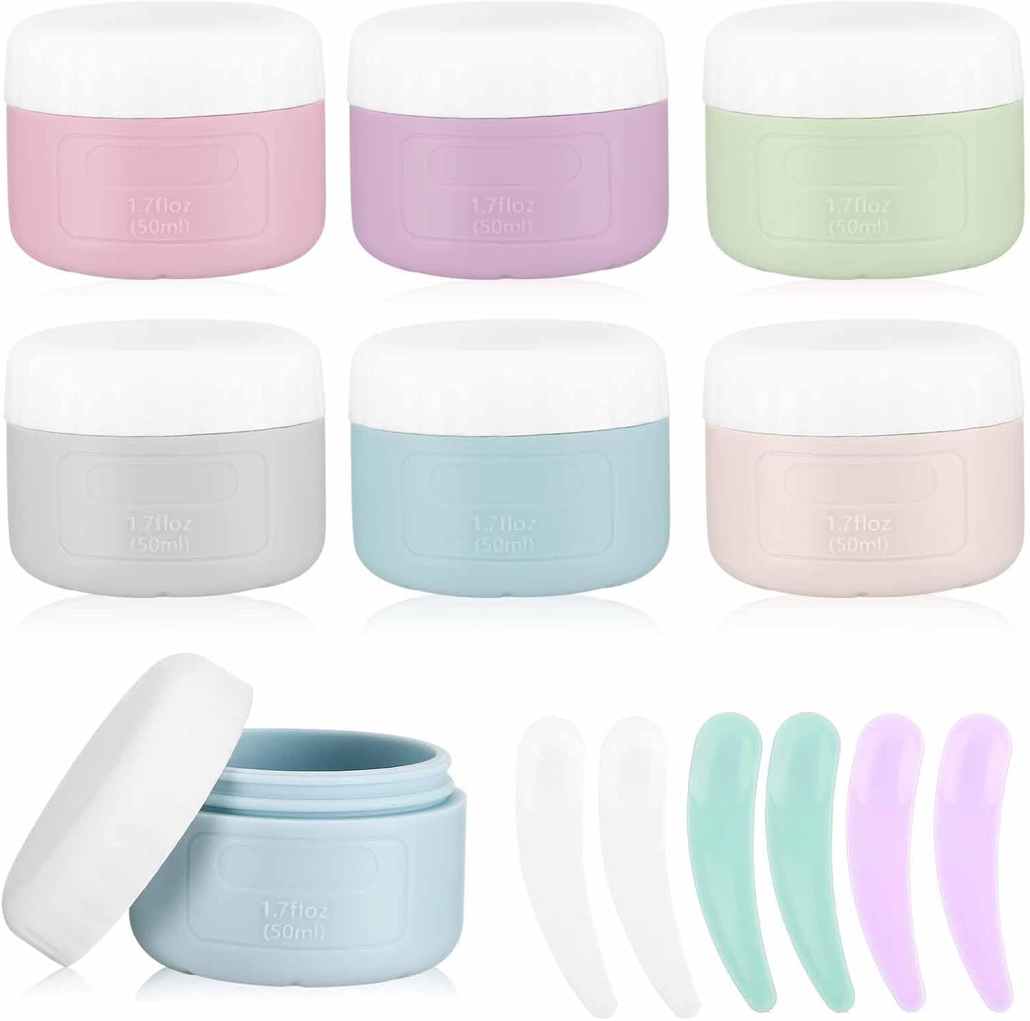 DHQH 6 Pack Travel Containers – Leak-proof Silicone Cream Jars, TSA Approved, Hard Sealed Lids for Cosmetic Makeup Face Cream (50ml)