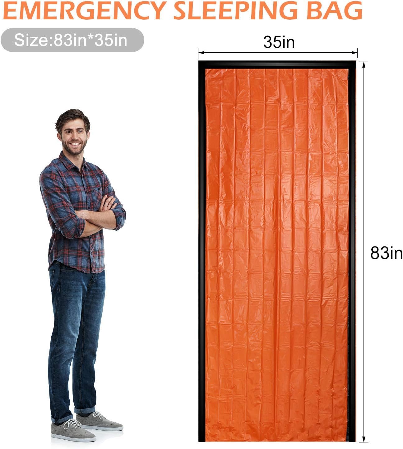 【Easy to Use】Just pull out the bivy sack, unroll and climb inside.Emergency sleeping bag can be used as a sleeping bag liner to keep your body temperature by reflecting back and retaining 90% of heat. Orange is a great color for signaling, so it is a great camping survival gear in your bug out bag.