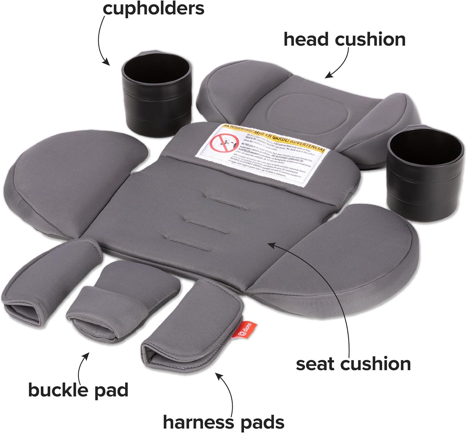 Diono Radian 3R Comfort Travel Kit, Infant Car Seat Accessory, Compatible with Radian 3R, 7-Piece Kit (2 Harness Pads, 1 Buckle Pad, Head Cushion, Seat Cushion, 2 Cupholders), Gray Storm