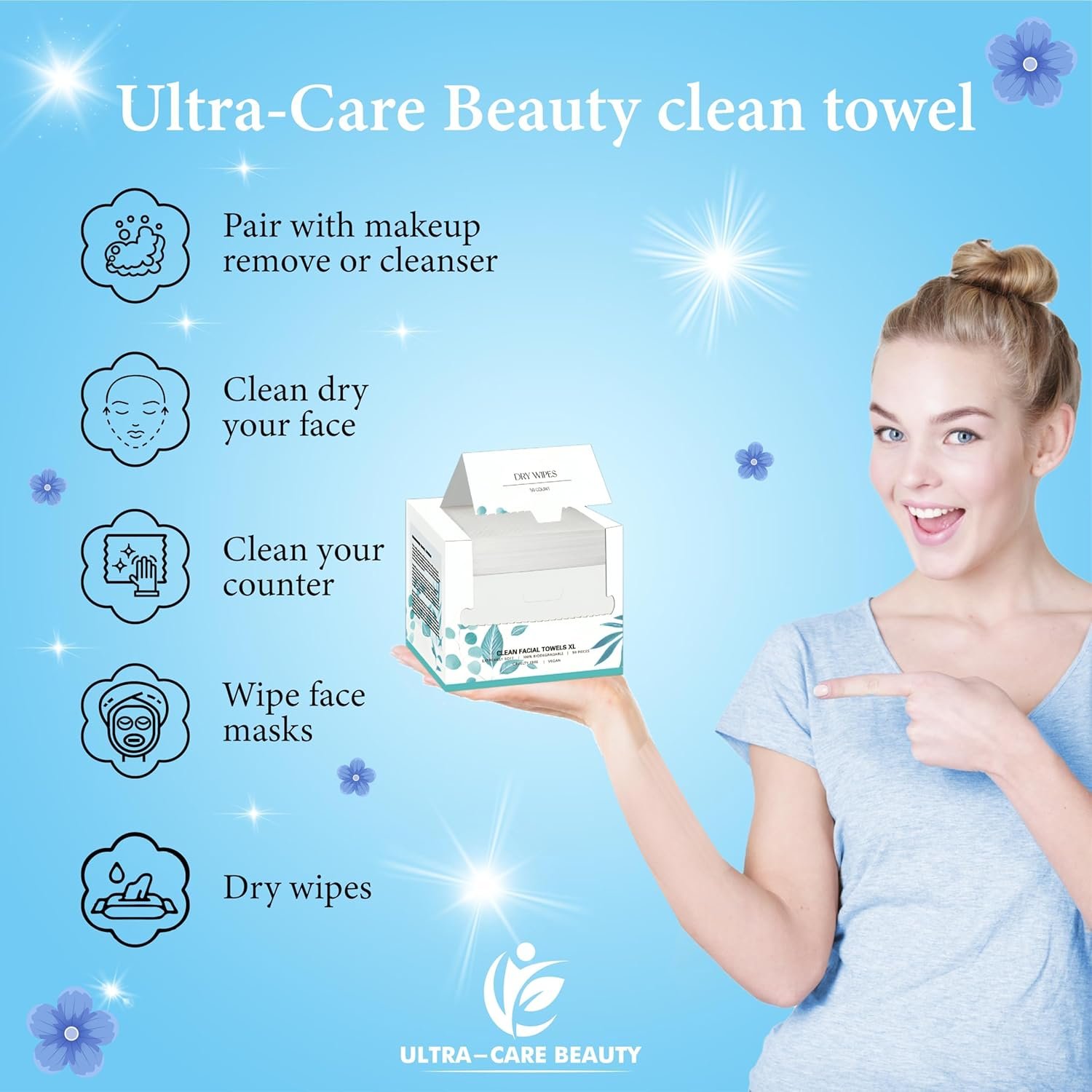 ☘️【Ditch Your Traditional Towels】 Studies reveal that conventional face towels often harbor more dirt and irritants than you might realize. These can cause sensitivity and inflammation in delicate skin. By Using Ultra-Care Beauty Facial Towels Disposable, you can significantly minimize the risk of exposing your skin to harmful substances.【Versatile Use】 Our Face Towels Disposable are incredibly versatile! Use them for drying your face and body, removing face masks, cleansing makeup, maintaining makeup tools, household chores, car cleaning, pet care, and outdoor activities while traveling.