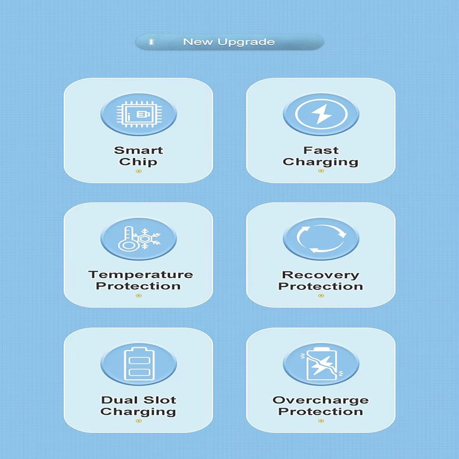 【Intelligent and Reasonable Charging】Supports AC 100-240V universal voltage input, adapting to different regional power environments. Intelligent recognition of the battery state, optimize charging current, single battery charging time of about 2-6 hours (the specific length of time depends on the battery capacity and the use of the environment).