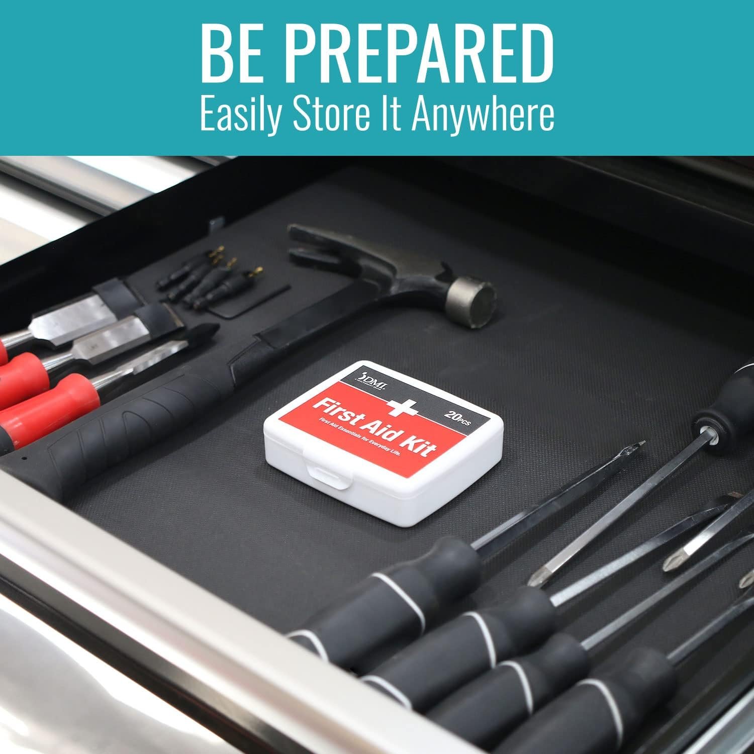 DMI 20-piece first aid kit for common minor cuts. Compact and incredibly portable. Can go wherever you go!