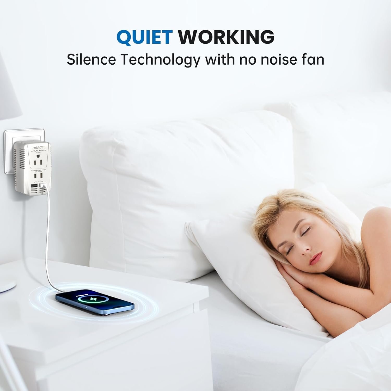 2000W 220V to 110V Converter & 2300W Travel Adapter & USB-A & USB-C