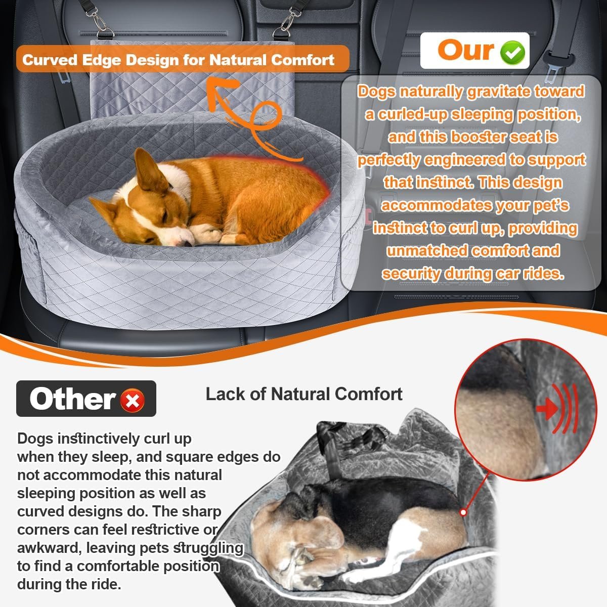 Ergonomic Curved Edge Design: Unlike square seats, this pet car seat features a curved edge that contours to your pet’s body for ultimate comfort. It reduces pressure points, supports healthy posture, minimizes joint strain on long rides, and eliminates sharp edges for a safer, cozier travel experience