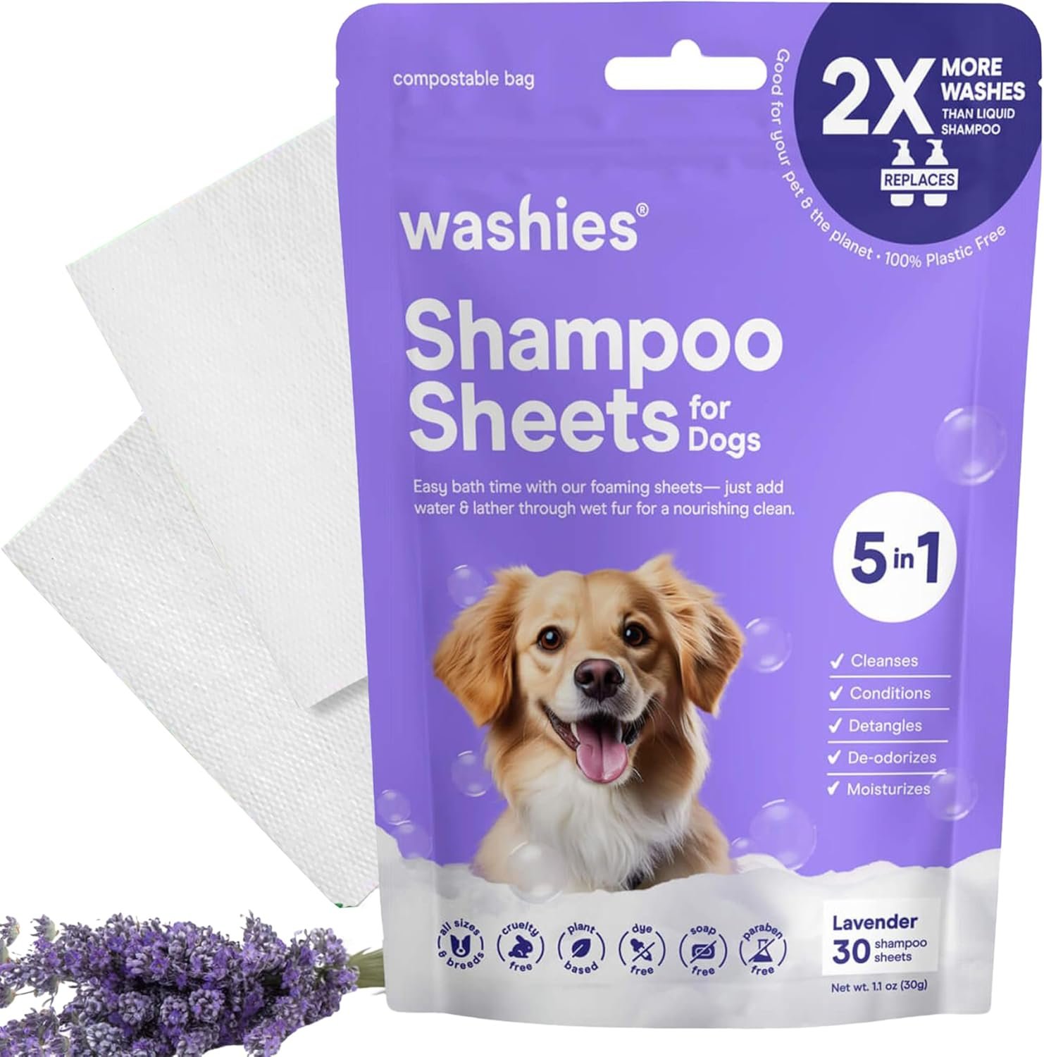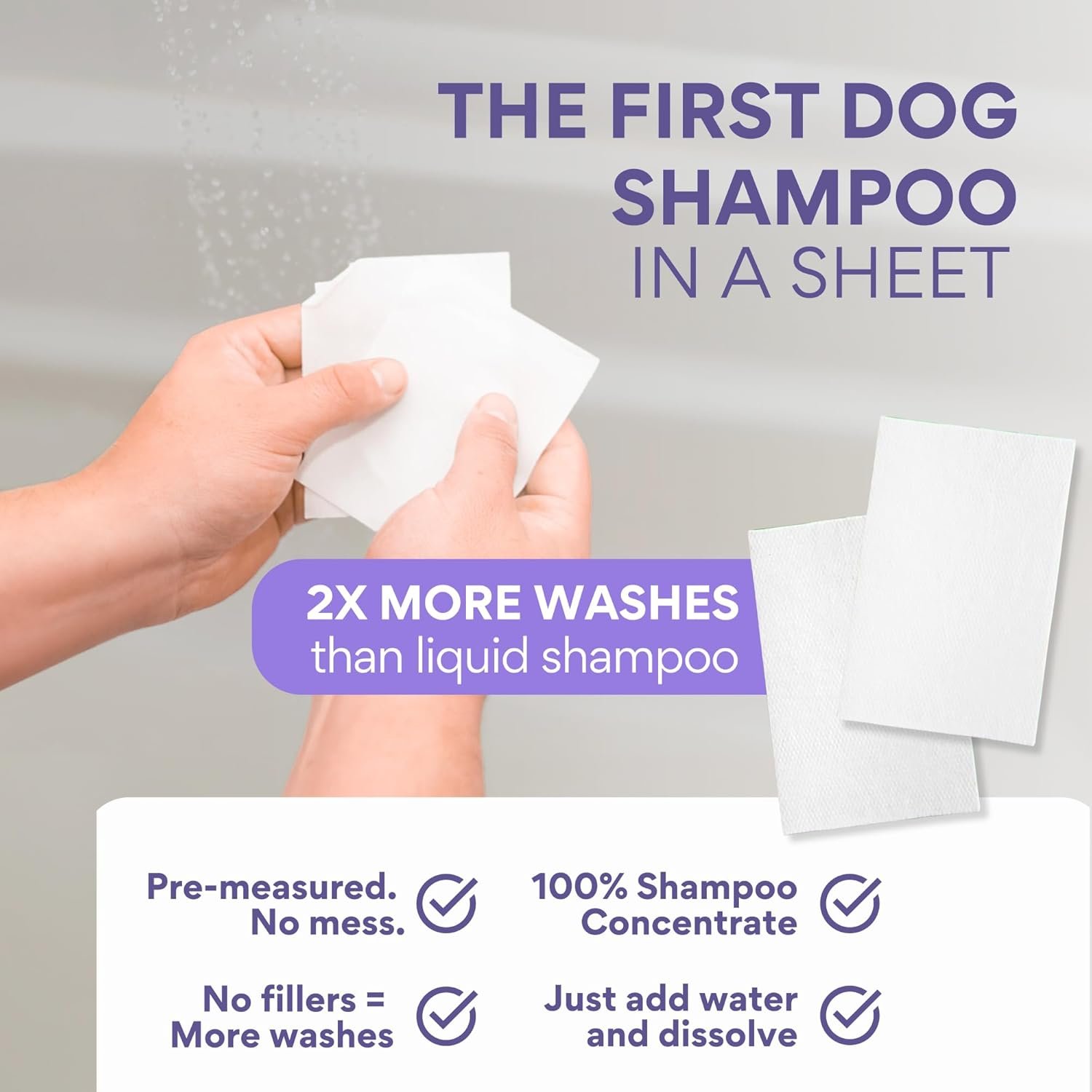 Dog Shampoo Sheets, 2X Washes Than Liquid Dog Bathing Supplies, Water Activated Puppy Shampoo & Dog Bath Supplies, Poodle Shampoo for Dog Bath, Dog Shampoo for Smelly Dogs (Lavender 30ct)