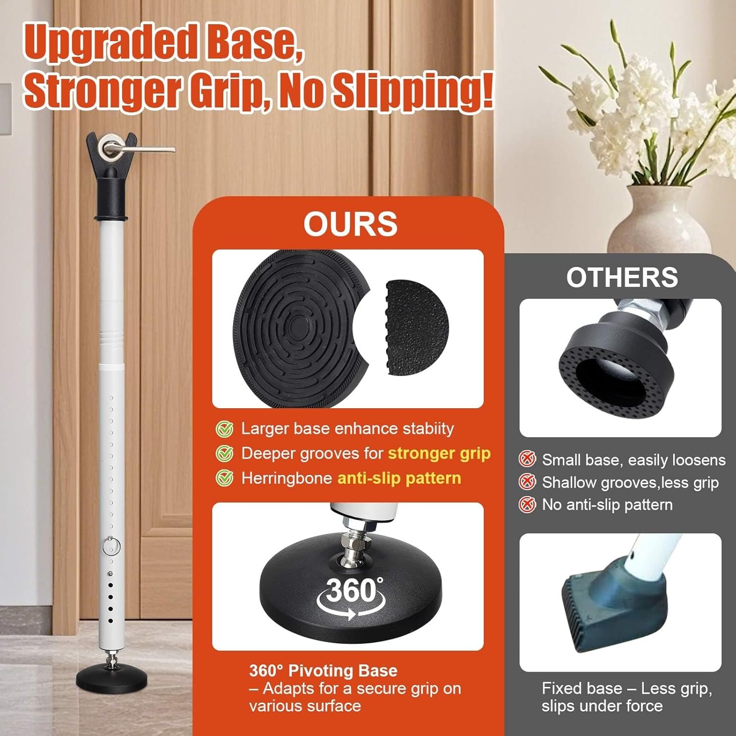 Upgraded Base, Stronger Grip, No Slipping! – Our enlarged, deep-groove, herringbone-textured round base delivers superior anti-slip power, gripping firmly on wood, carpet,tile and uneven floors. Unlike fixed bases that struggle on angled surfaces, The 360°adjustable pivoting base ensures full floor contact for maximum stability. No slipping, no sliding,just rock-solid protection to keep intruders out!