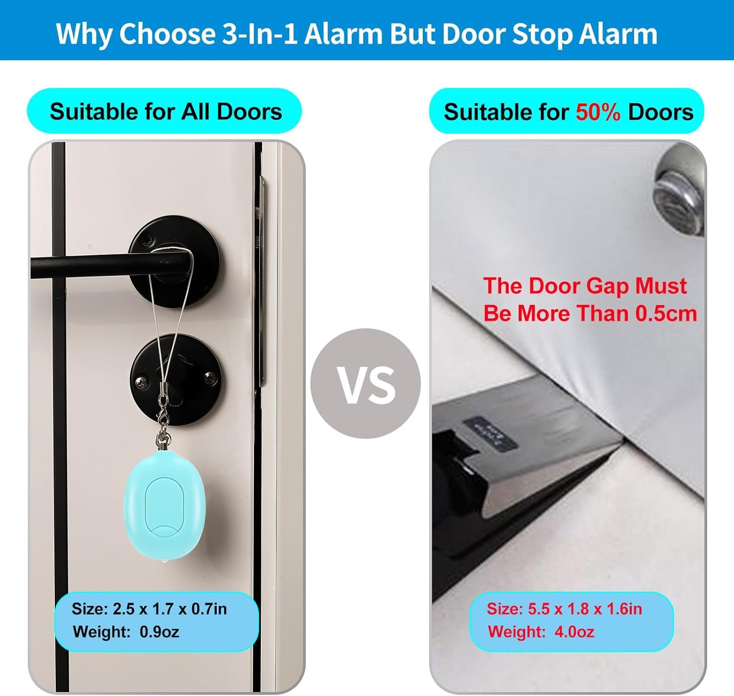 This alarm is especially suitable for college students girls. It’s a apartment door safety alarm, self defense personal alarm, travel safety alarm.