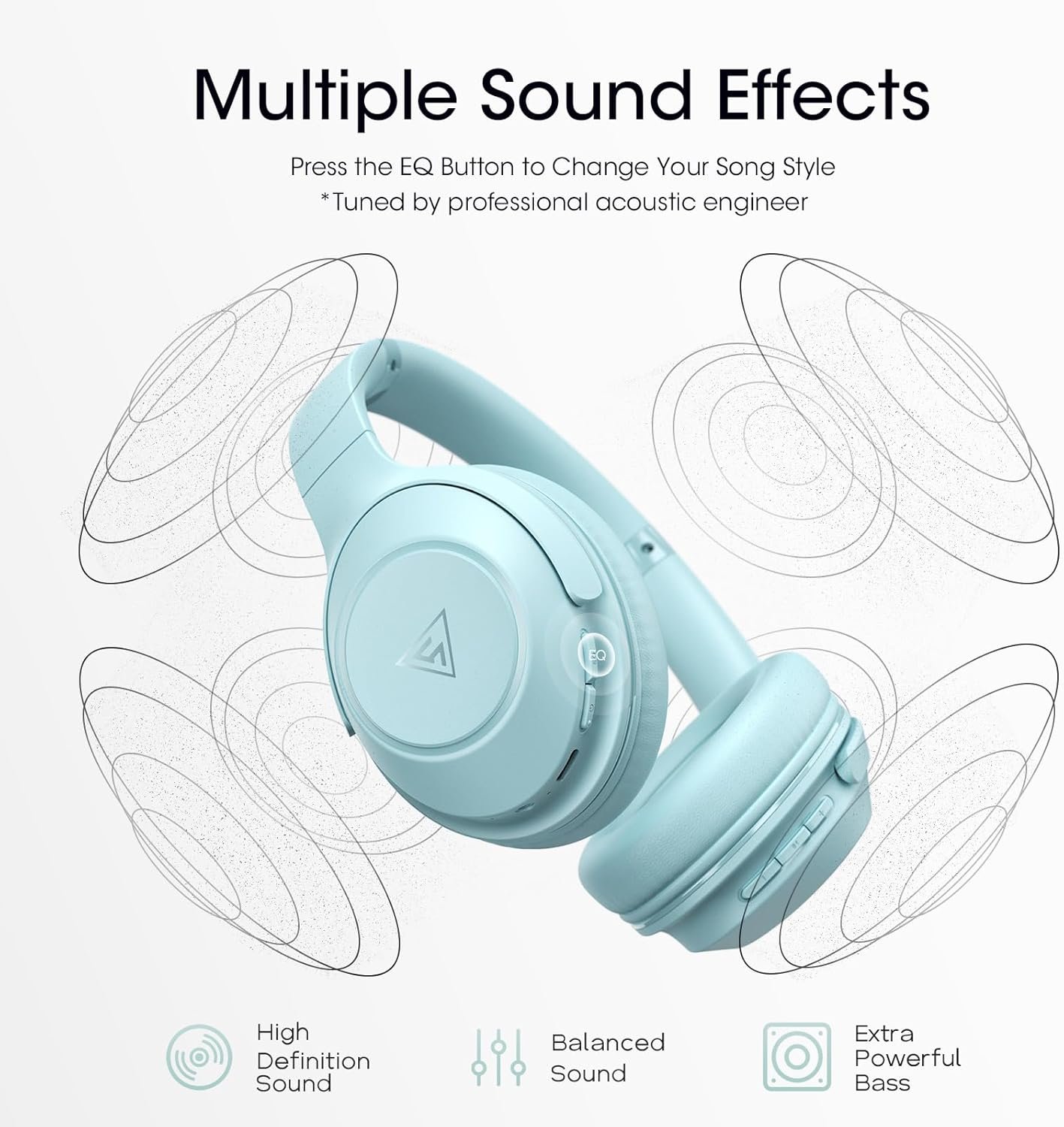 HIFI Stereo Audio with 3 EQ Modes: Equipped with 3 EQ modes tuned by professional acoustic engineer. you can freely switch between well-balanced, bass boosted and high definition sounds. Adopted with dual 40mm dynamic driver, DOQAUS LIFE 5 over ear headphones bluetooth deliver crystal crisp highs, balanced mids and powerful bass. You can enjoy high-quality crystal clear stereo sound with our DOQAUS Wireless Bluetooth Headphones Over the Ear.