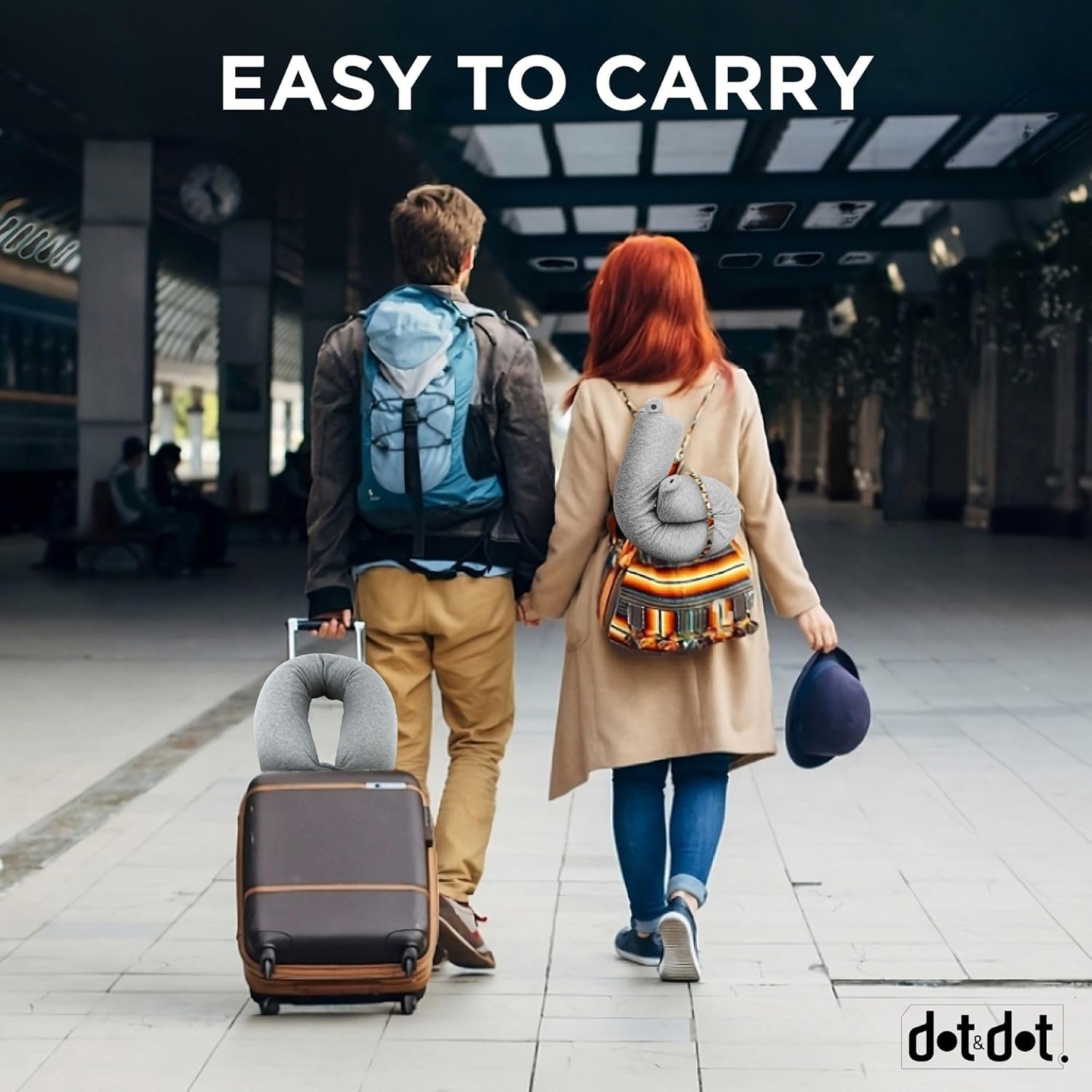 Dot&Dot Twist Memory Foam Travel Pillow for Airplanes – Travel Neck Pillow for Sleeping – Airplane Pillow for Neck Support, Chin, Lumbar and Leg – Adjustable, Bendable Neck Roll Pillow
