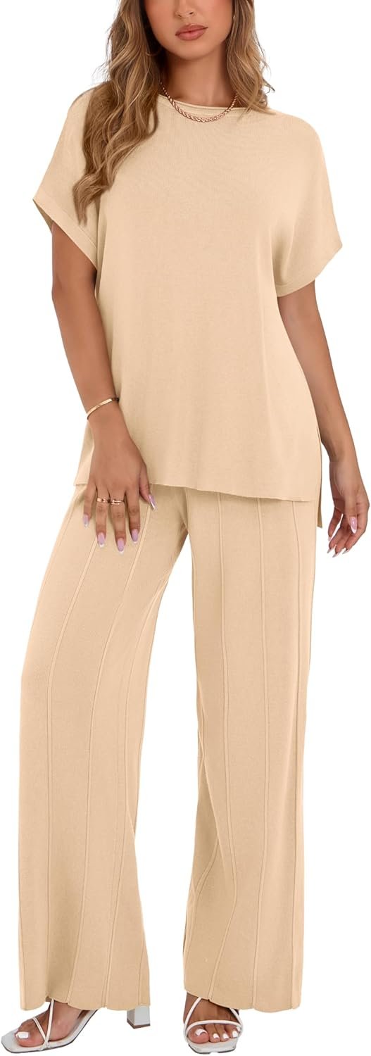 Be the first to review “dowerme Women Summer Clothes 2025 Casual 2 Piece Outfits Ribbed Knit Lounge Set Pullover Top Pleated Wide Leg Pant Sets” Cancel reply