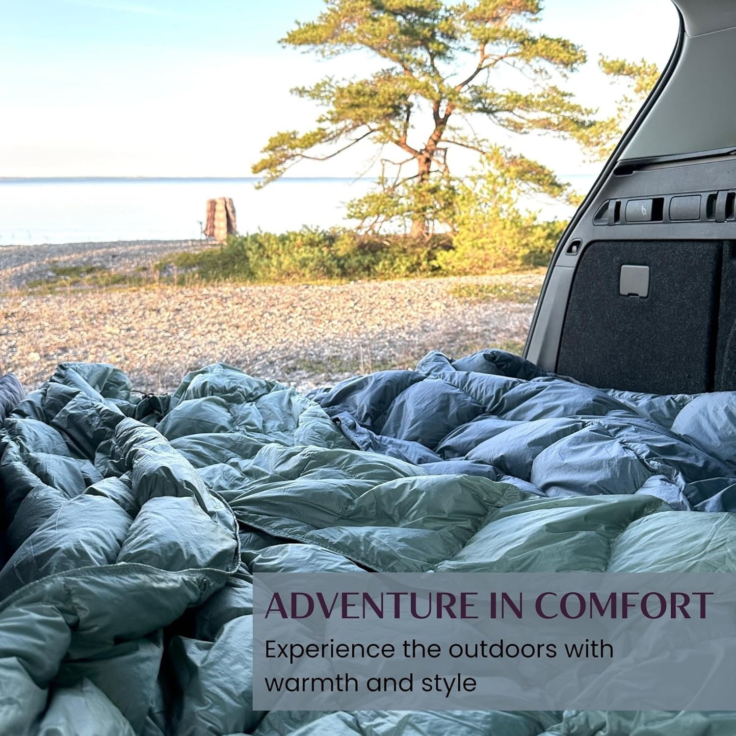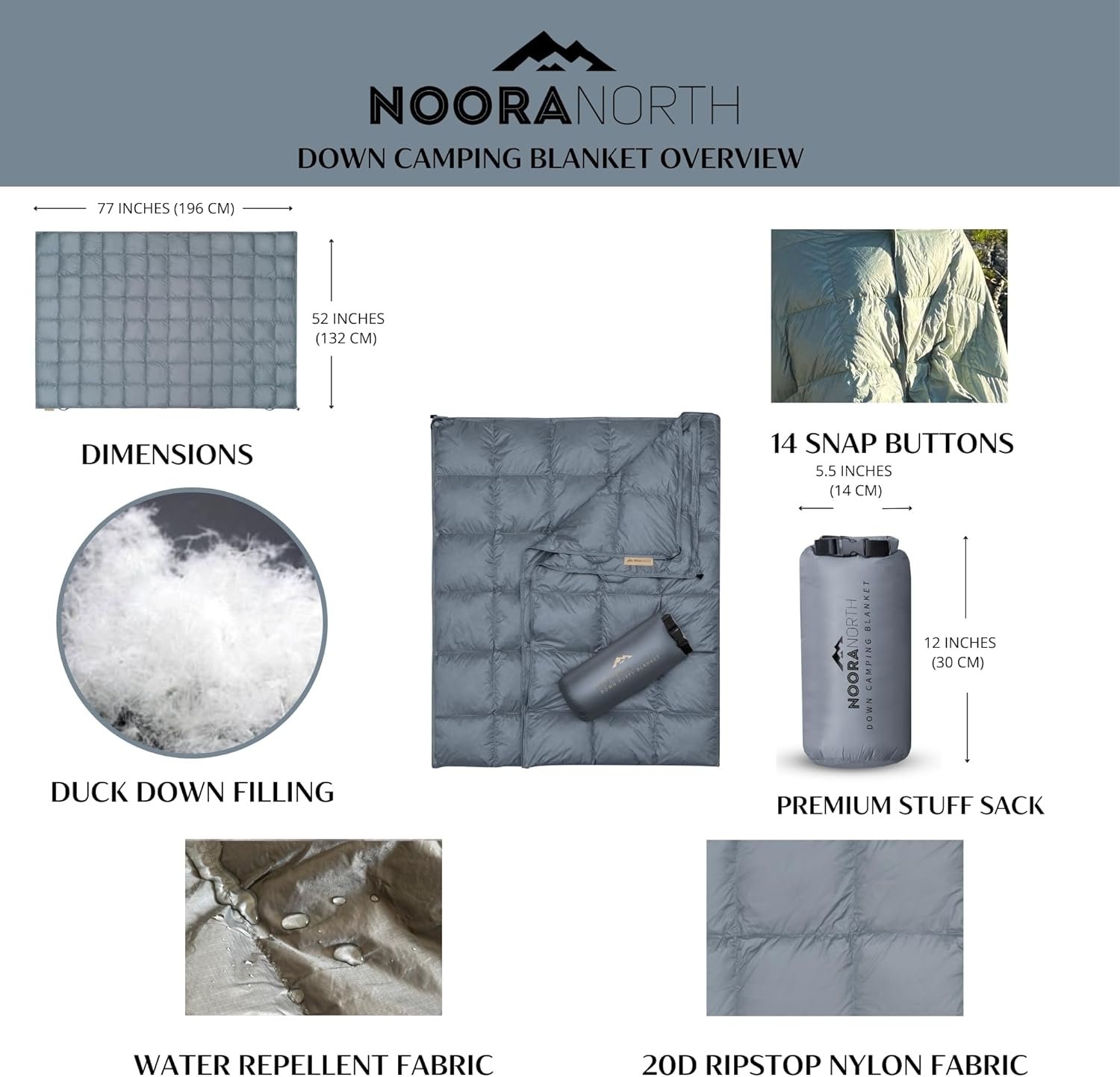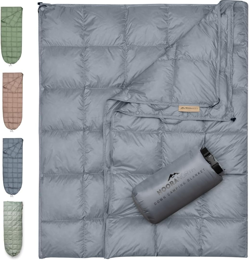 5-star review: Lightweight, cozy down camping blanket with drawstring and snaps for comfort.5-star review: Lightweight, cozy down camping blanket with drawstring and snaps for comfort.