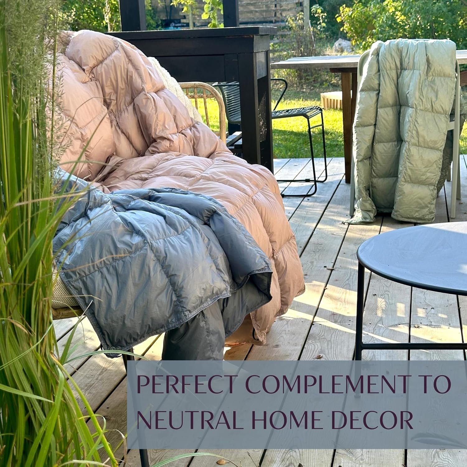 PERFECT COMPLEMENT TO NEUTRAL HOME DECOR – Offered in three stylish and muted colors; Misty Blue, Light Sage Green and Blushing Pink, this packable blanket complements neutral home decor and modern Scandinavian interiors. It also blends seamlessly into natural landscapes adding calm elegance to any space.