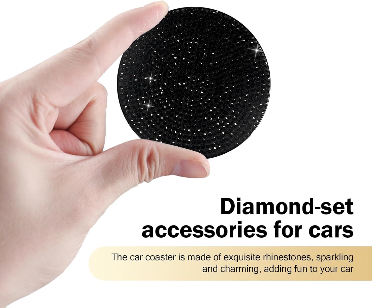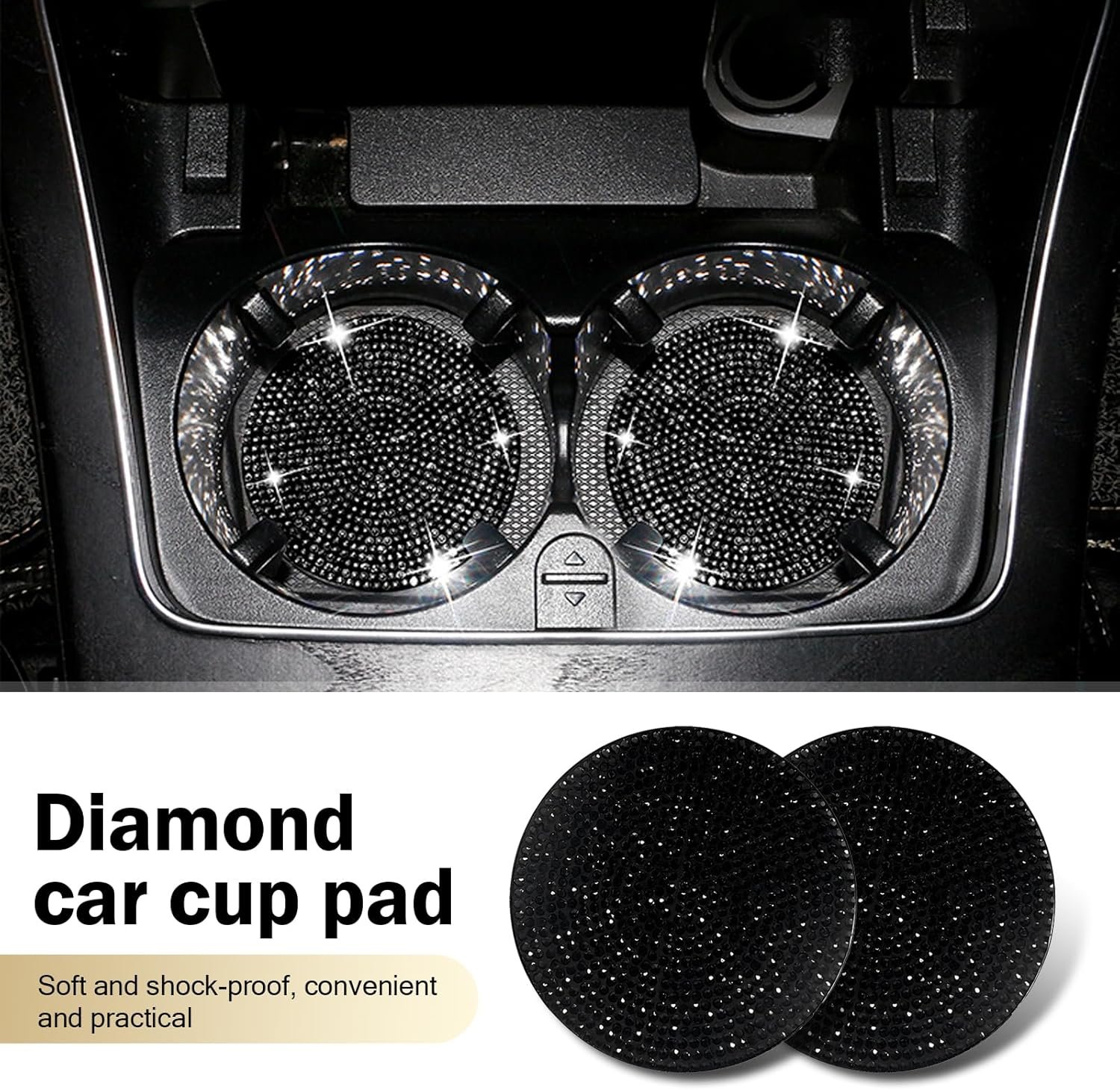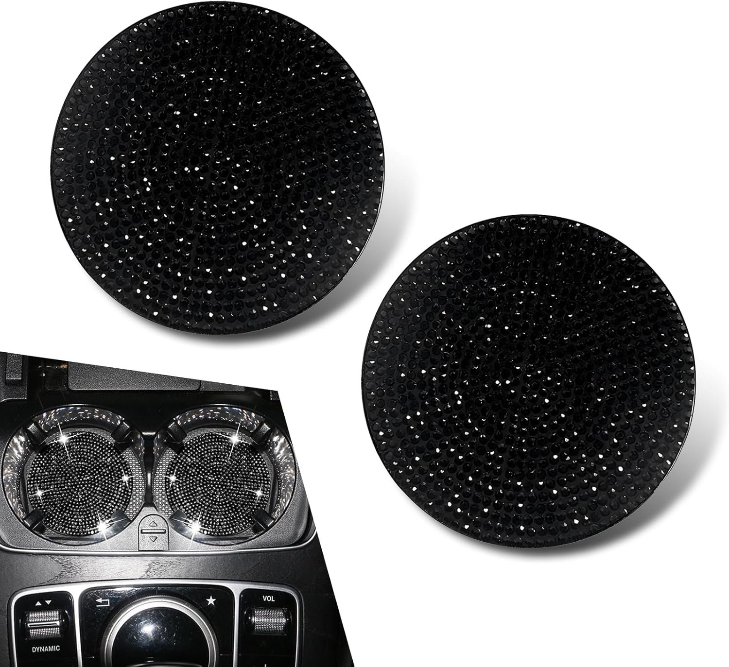 Downhill 2 PCS Bling Cup Holder Coasters, 2.75 Inch Non-Slip Crystal Cup Mat, Embedded Cup Coaster, Universal Car Interior Accessories, for Most Cars, Trucks (Black)