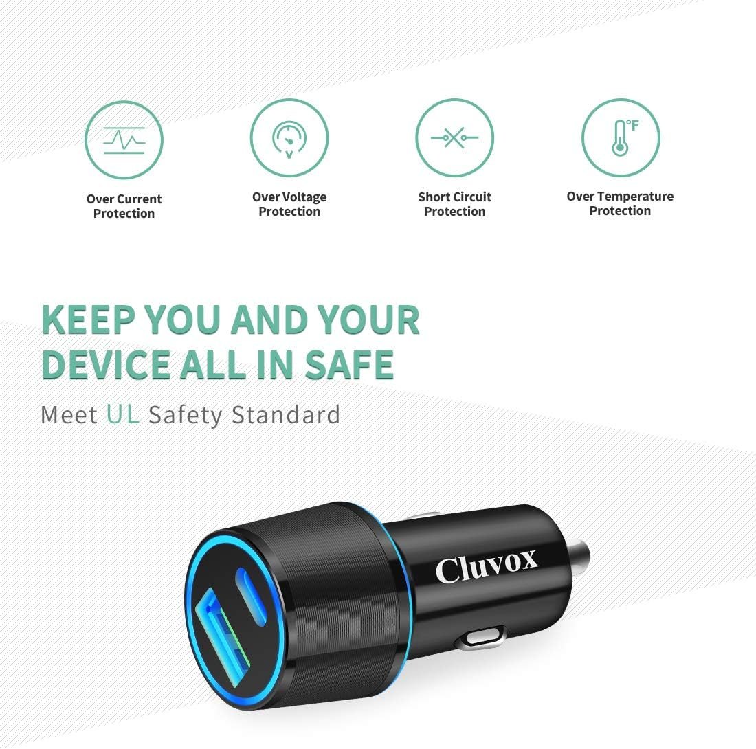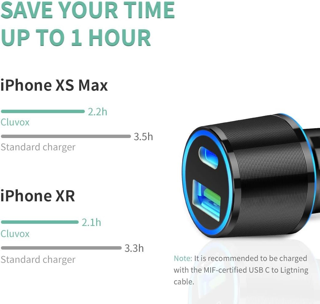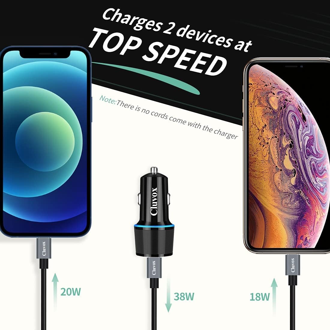 Dual USB Car Charger Adapter, Cluvox 20W Fast Charge Car Charger for iPhone 16/15 Pro Max/Plus/14/13/12/11/XS/XR/X/8/SE 2020/iPad 8th/Pro/Air 4/Mini, Google, Samsung Cigarette USB Adapter