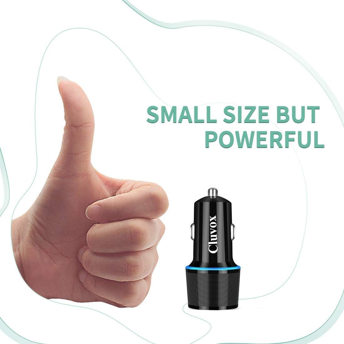Small but Powerful: High speed car charger perfectly charge 2 devices in 20W(max) and 18W each port. No more fighting with your passenger for the charger in the car