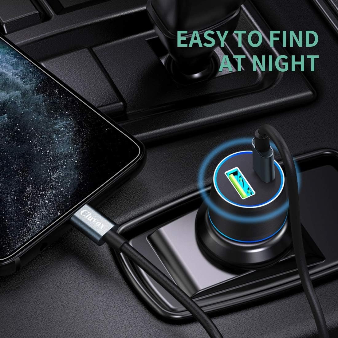 Easy to Find at Night: Fast charging car charger combine circular soft blue LED light and Multi-annular design of appearance, easy to find and use at night