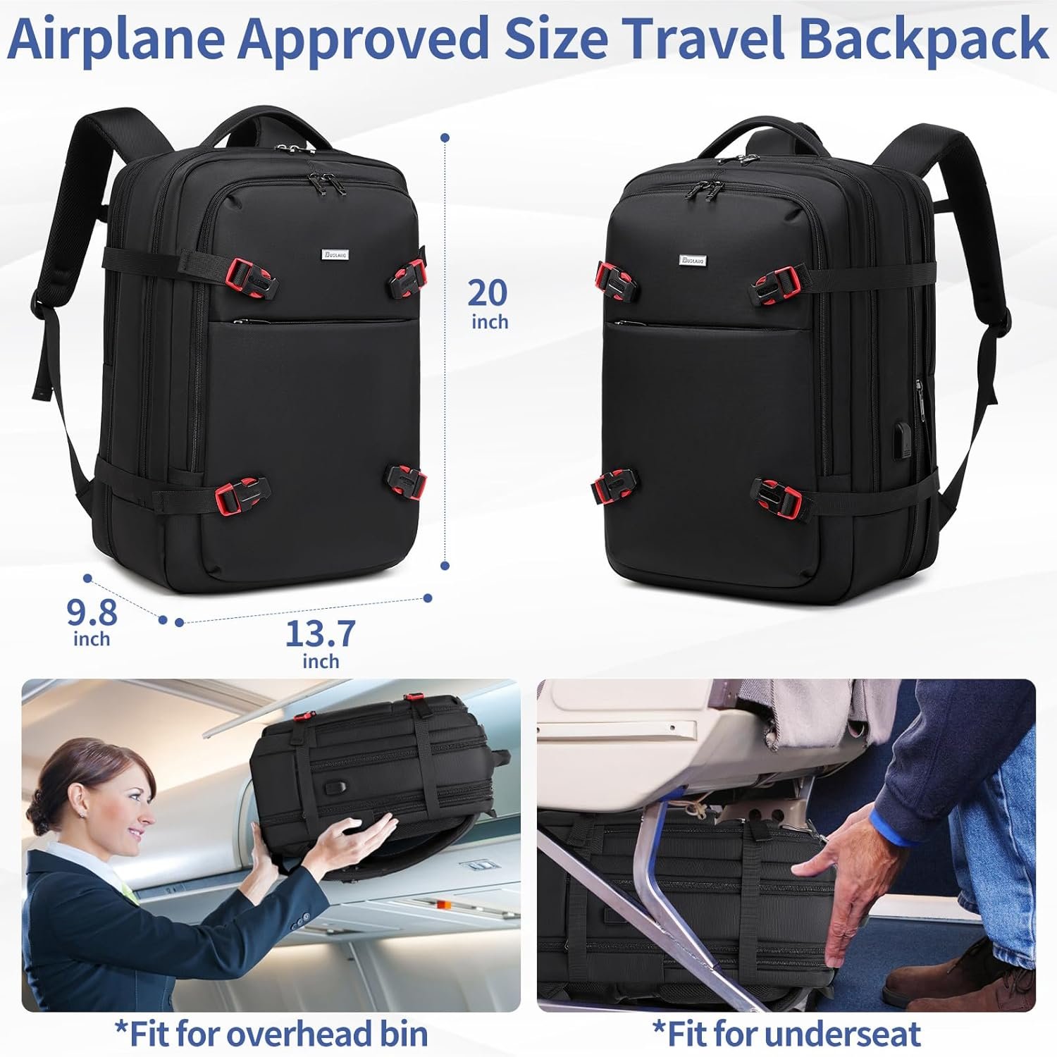 FLIGHT APPROVED & LUGGAGE STRAP:Airline approved carry on bag fits overhead and under the seat.Dimensions 20*13.7*9.8inch,carry on backpacks for traveling on airplane also meets airline carry-on requirements.The luggage belt on the back allows being slide over the luggage tube,backpack very easy to carry.