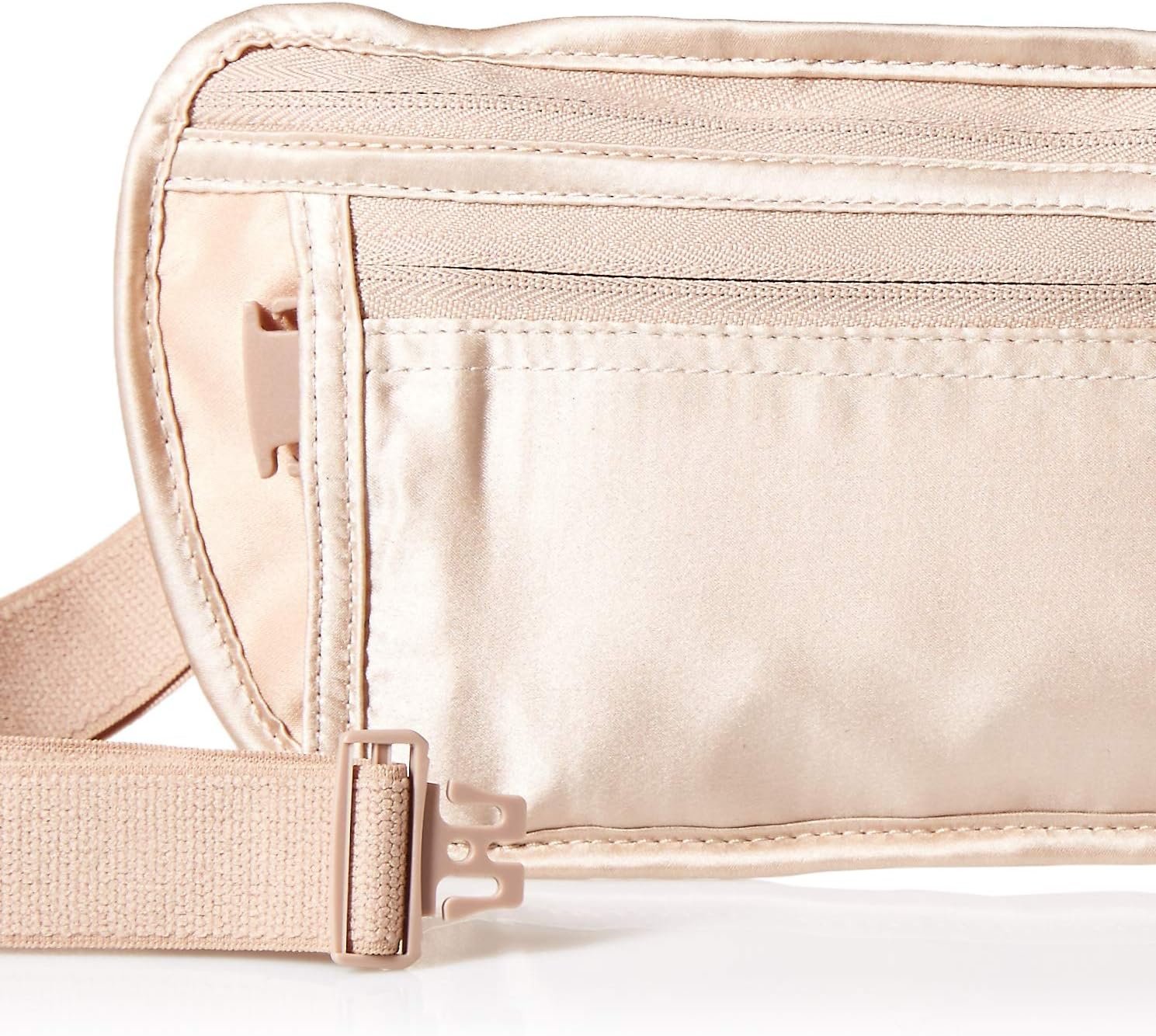 SWEAT-RESISTANT: this travel belt bag has a coated satin lining for sweat resistance all day