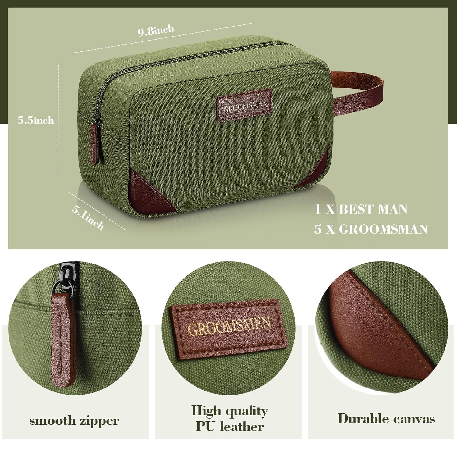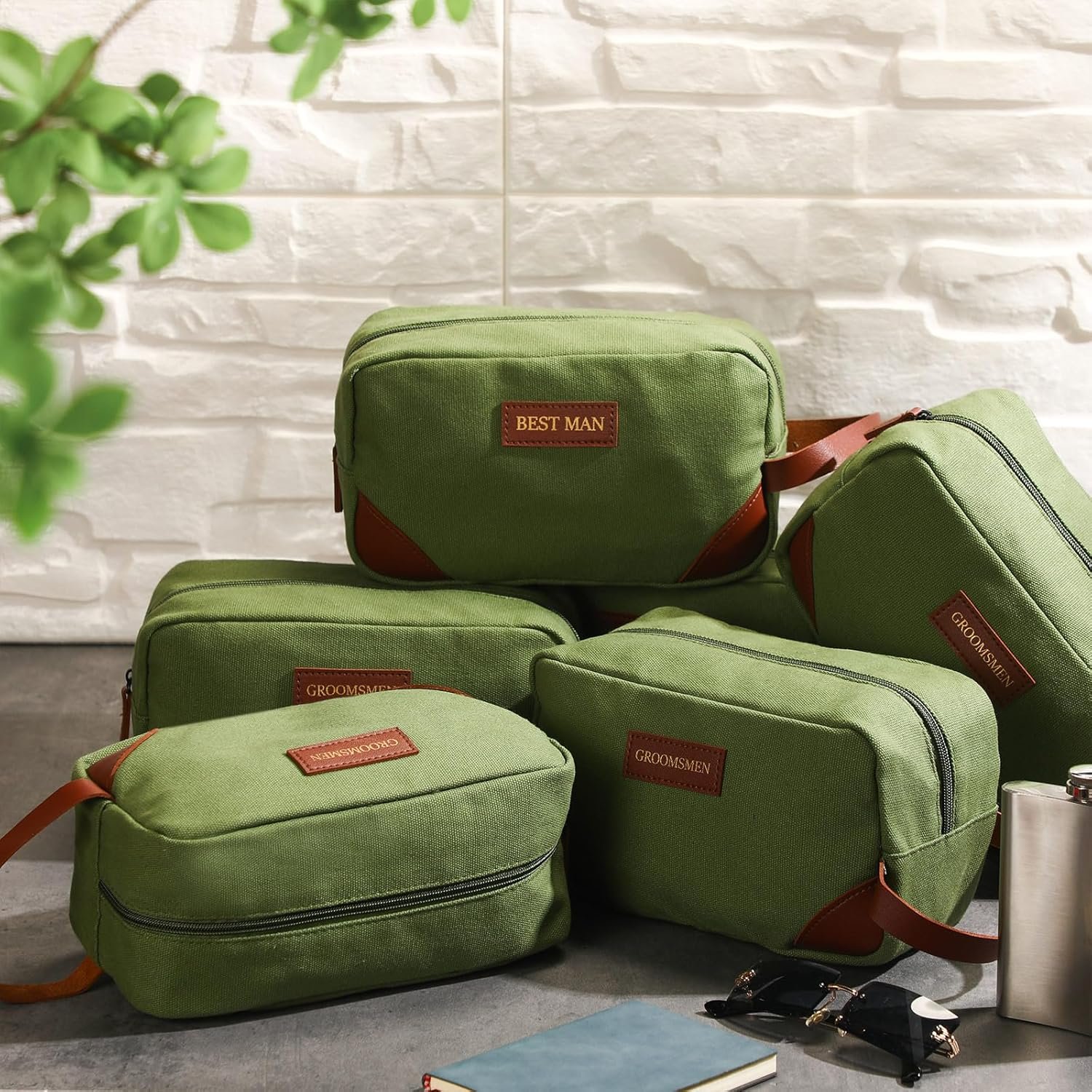 Eccliy 6 Set Groomsmen Gifts Men Toiletry Bags Men’s Travel Shaving Kit Bathroom Bags Water Resistant Toiletry Case for Wedding Groomsman Proposal Gift Travel Accessories(Army Green)